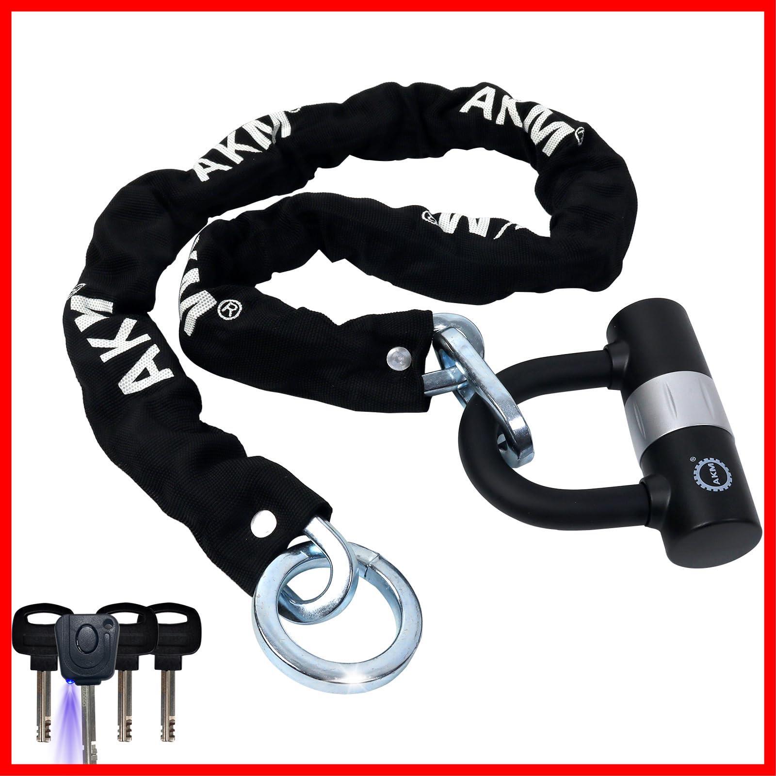 AKM バイクロック【高い耐切断性】極太チェーンロック φ(直径)10mm×1200mm U字ロック付き 自転車原付オートバイ…