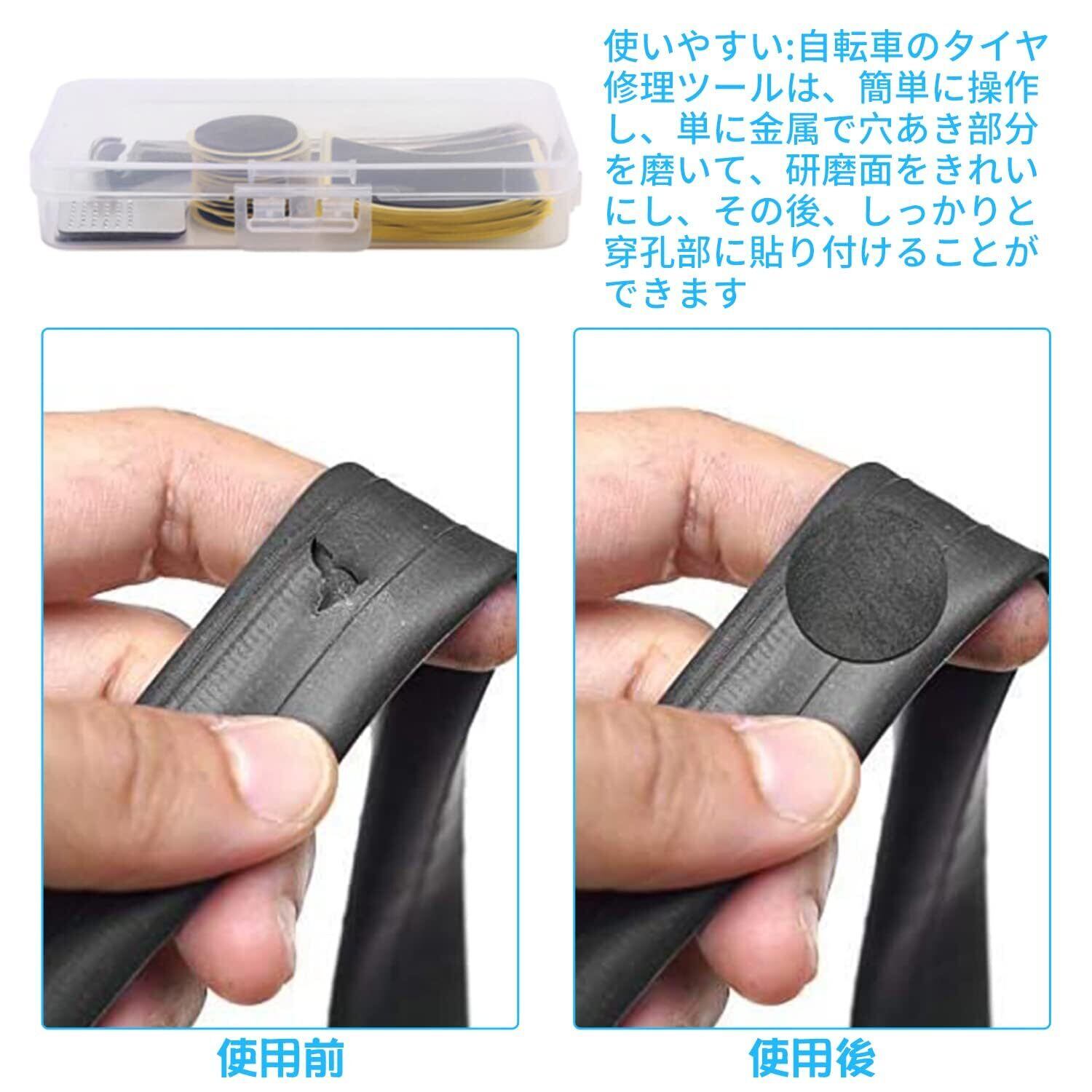 【在庫セール】粘着剤不要 便利 緊急用タイヤ修理自転車 自転車タイヤパッチ 応急修理用 (18点セット) 汎用性 自転車パンク修理キット 修理キット ステンレス鋼 タイヤ 自転車 収納ボックス付き nalaina