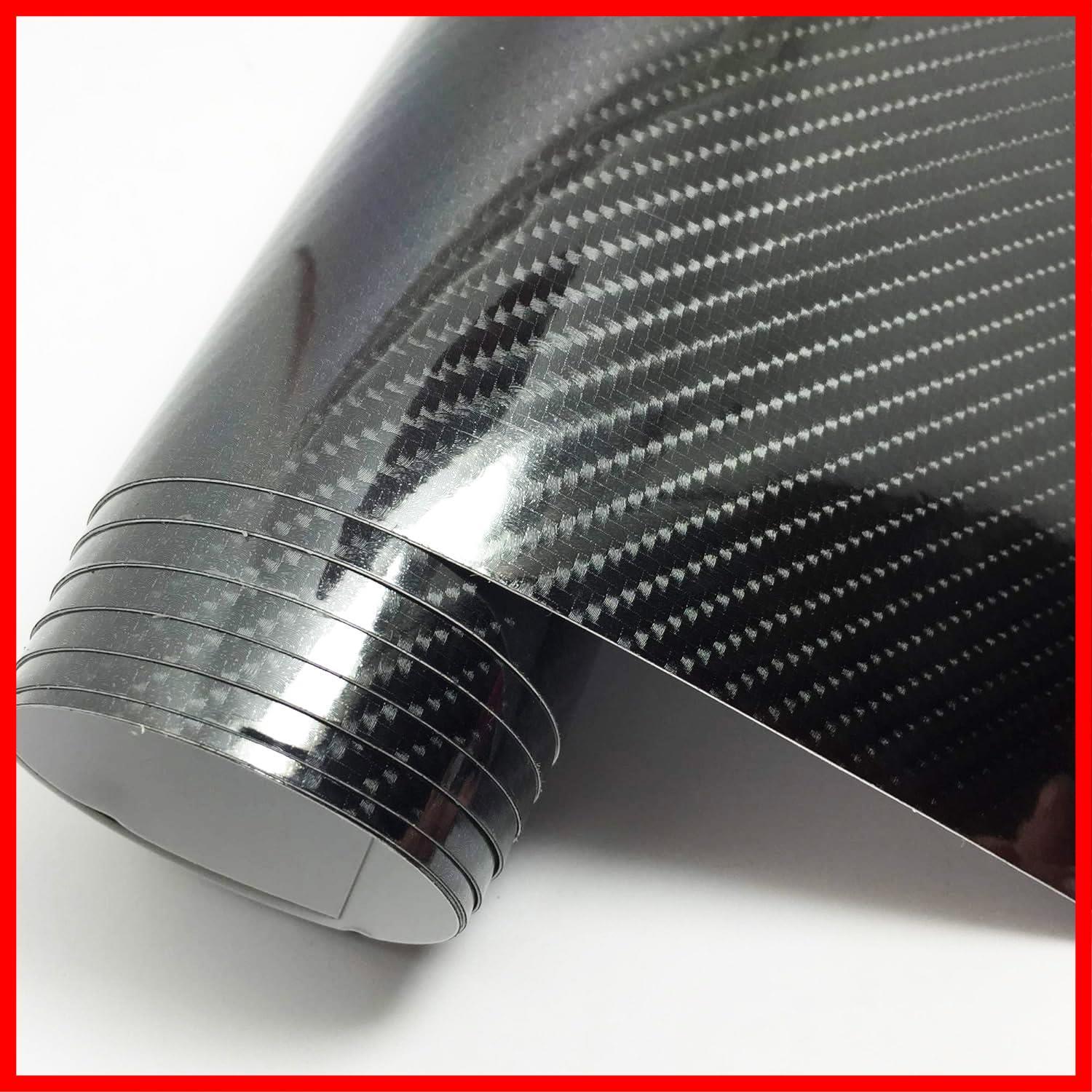 カーボンシート ブラックカーボンファイバービニール ステッカー ラッピングフィルム ハイグロス 自動車ラップフィルムDIY インテリアステッカー 耐熱耐水曲面対応裏溝付 エア抜き溝仕様 内外装 (6Dブラック)