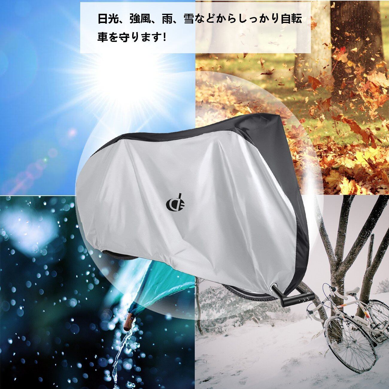 【高い撥水効果&UV加工】:PUコーティングで自転車カバー防水の効果は通常の約2倍。縫い目までしっかりと撥水加工を施し、細部までこだわった生地。40+UVカットとシルバーコーティングでカバーや自転車本体の劣化の原因となる紫外線を反射して大幅にカット、車体をより長持ちさせます。【安心仕様と大きいサイズ】:約200cm x 110cm x 70cm。立体裁断と絞りゴムより、風の侵入を防止、自転車にすっぽりと被せます。22~29インチの自転車や27インチまでのバイクに対応。サイクルカバーと同じの高品質素材の収納袋も付属されており。