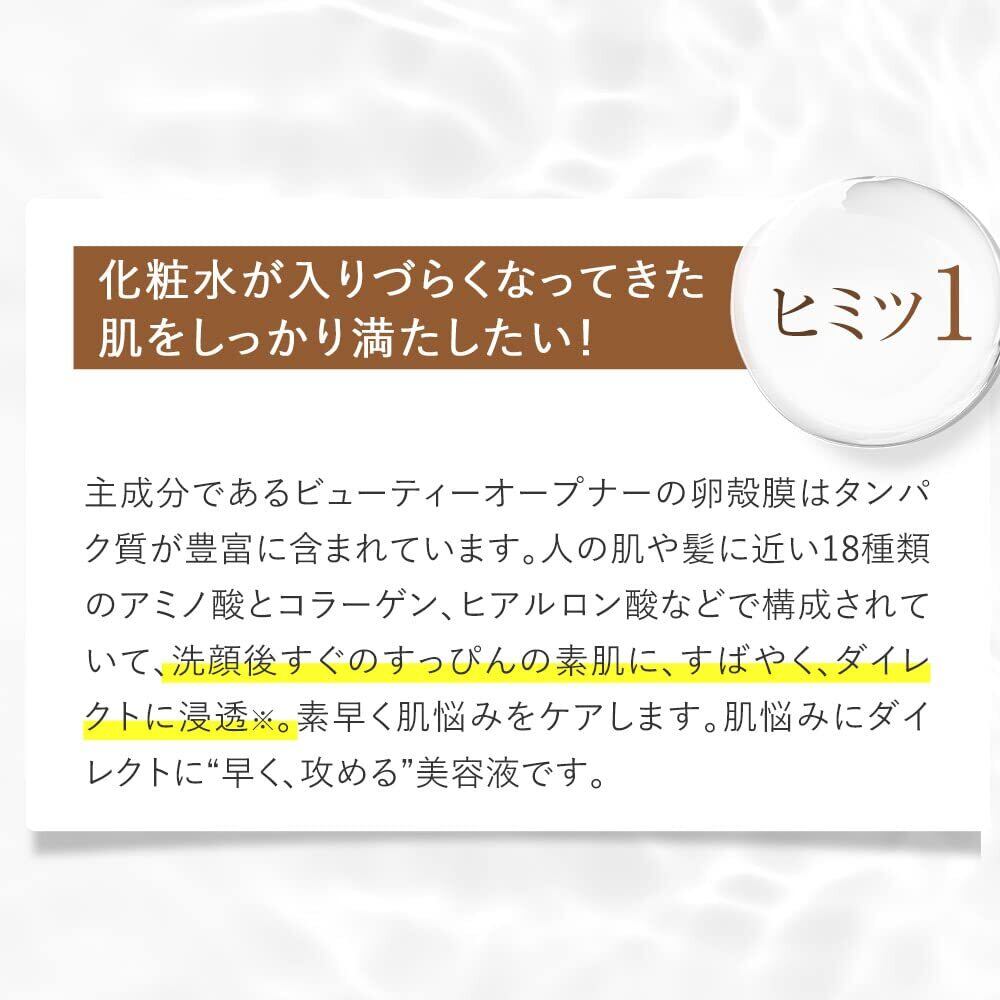 卵殻膜のエキスを95%と高配合!洗顔後の毎日の1滴でハリ肌へ