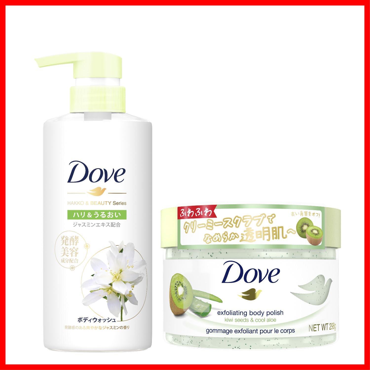 【セット買い】角質ケアセット Dove(ダヴ) キウイ&アロエ クリーミースクラブ ボディスクラブ 本体 298g+Dove(ダヴ)ボディソープ 発酵&ビューティーシリーズ ハリ&うるおい (ボディウォッシュ) ポンプ 480g