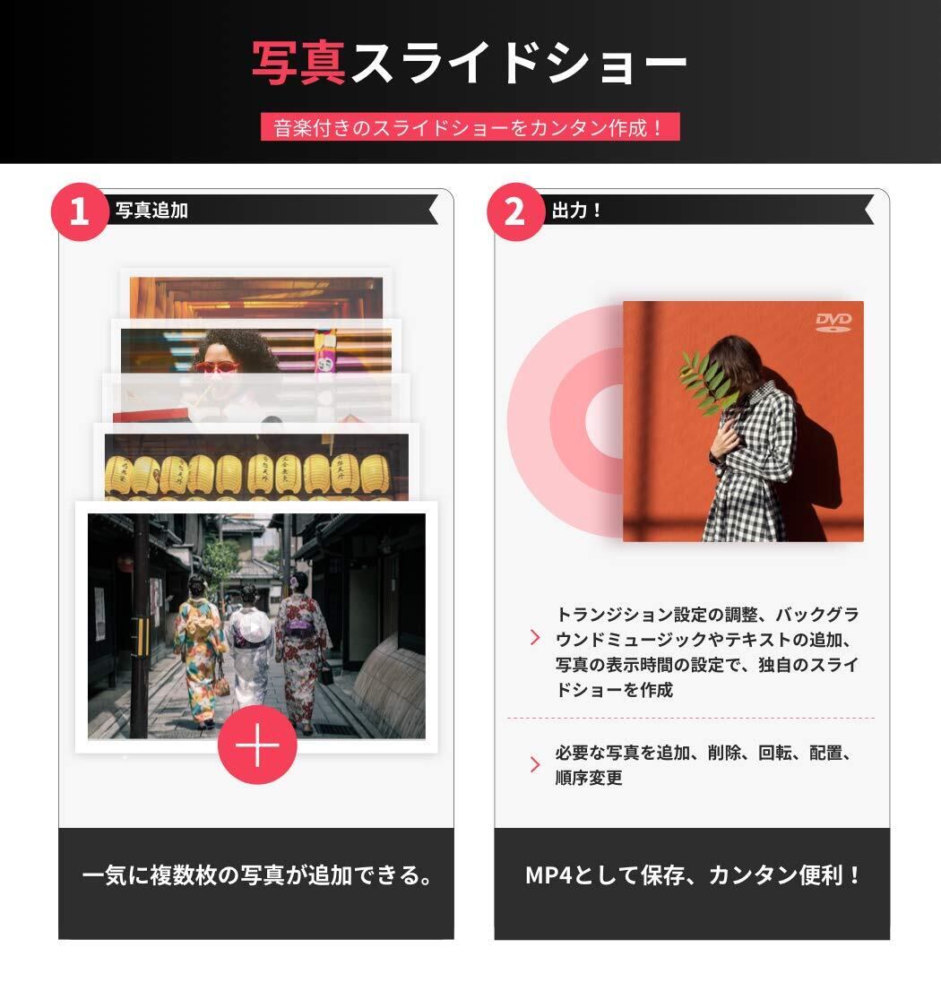 【音楽付きのスライドショーを作成】 トランジション設定の調整、バックグラウンドミュージックやテキストの追加、写真の表示時間の設定で、独自のスライドショーを作成することができます。 必要な写真を追加、削除、回転、配置、順序変更することは可能です。