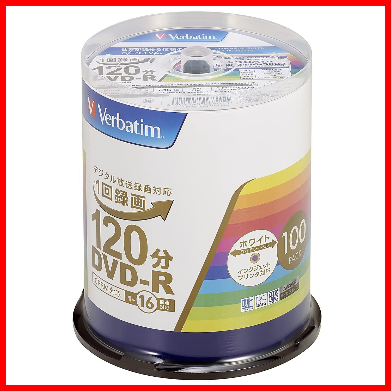 Verbatim バーベイタム 1回録画用 DVD-R CPRM 120分 100枚 ホワイトプリンタブル 片面1層 1-16倍速 VHR12JP100V4
