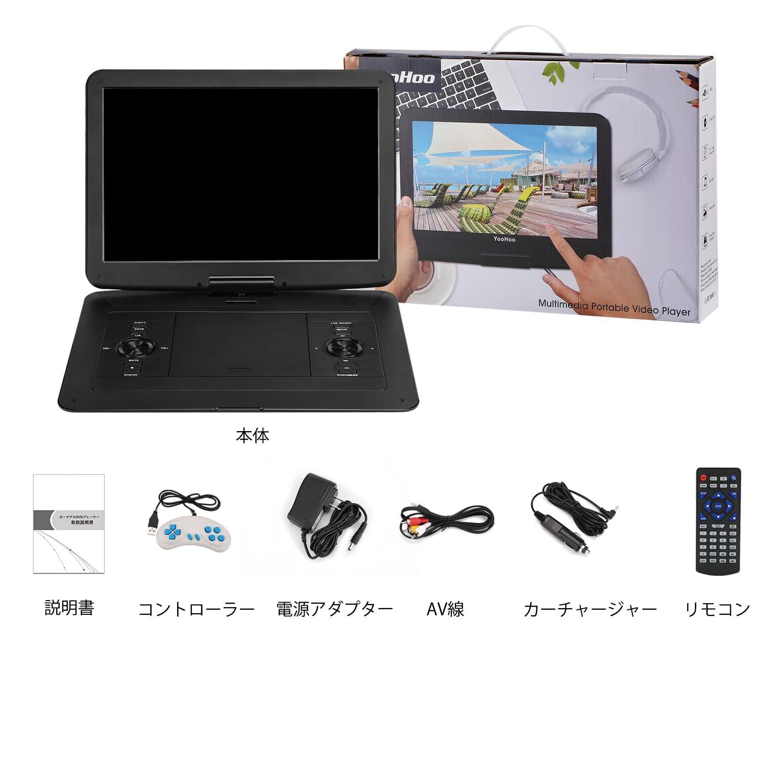 YOOHOO ポータブルDVDプレイヤー CDプレーヤー 16インチ スクリーン 270度回転 CPRM対応 大容量充電バッテリー 長時間連続放送可能 小型 持ち運び便利 動作音も静か 1個コントロール付き