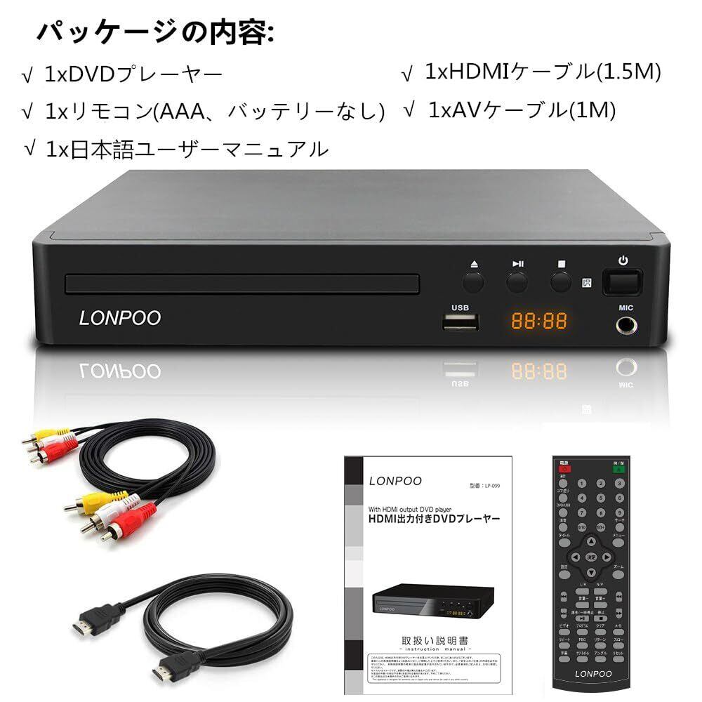 LONPOO DVDプレーヤー リージョンフリー HDMI/AV出力1080P CPRM再生可能 USB2.0入力 カラオケ用マイクジャック LEDディスプレイ PAL/NTSC対応 コンパクトDVDプレーヤーテレビ用 HDMI/AVケーブル付き フル機能のリモコンをサポート