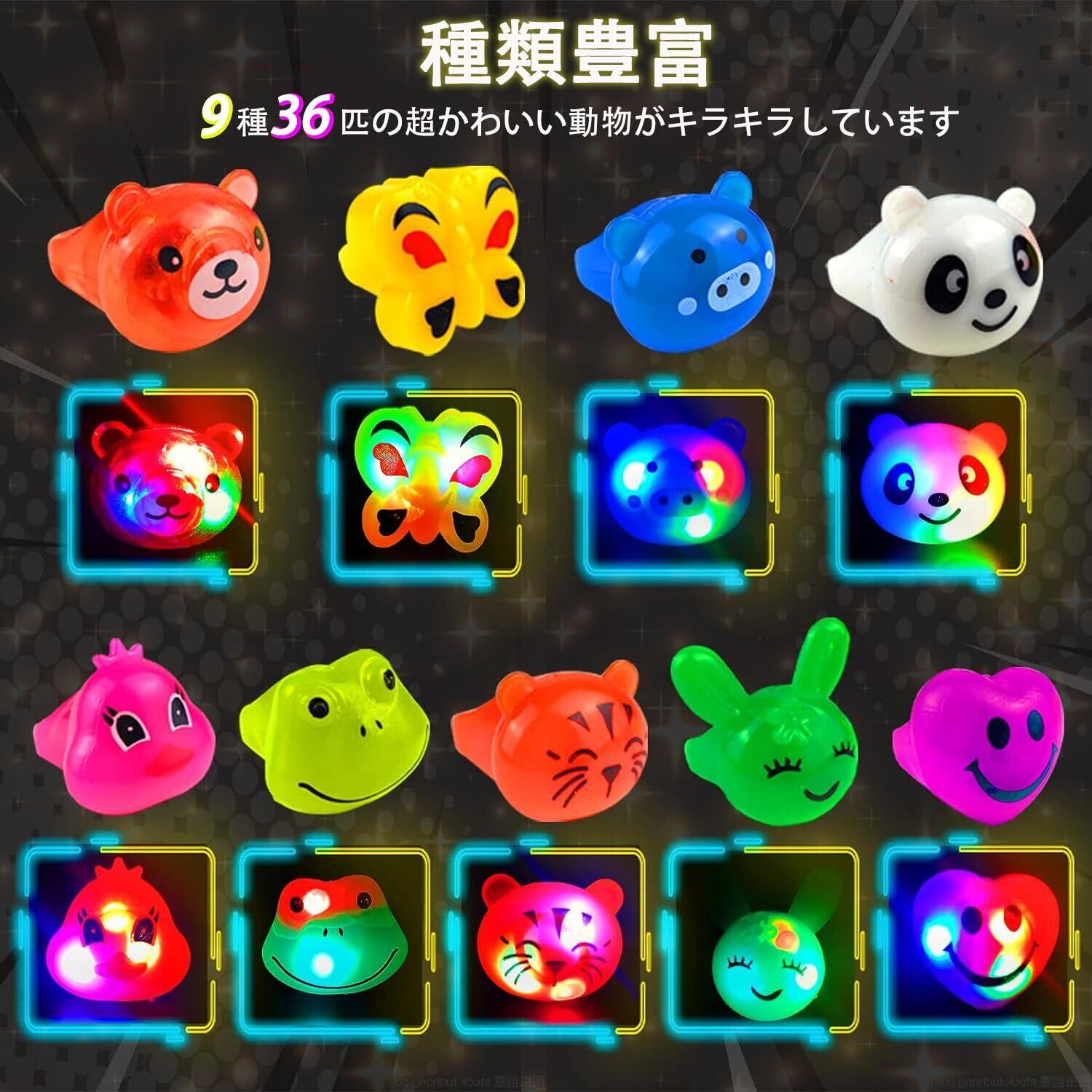 [Bekftanm] 光る指輪 光るおもちゃ 36個 縁日 お祭り 景品 動物 子ども 夜祭り 夏祭り ライブ用 キラキラリング ピカピカ 装飾 子供・大人対応可