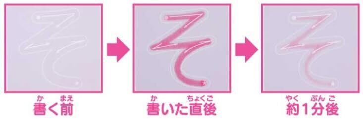 水に浸したペン先で描くと発色し、乾くと色が消えるボードを使っているので何度でも使えます。
