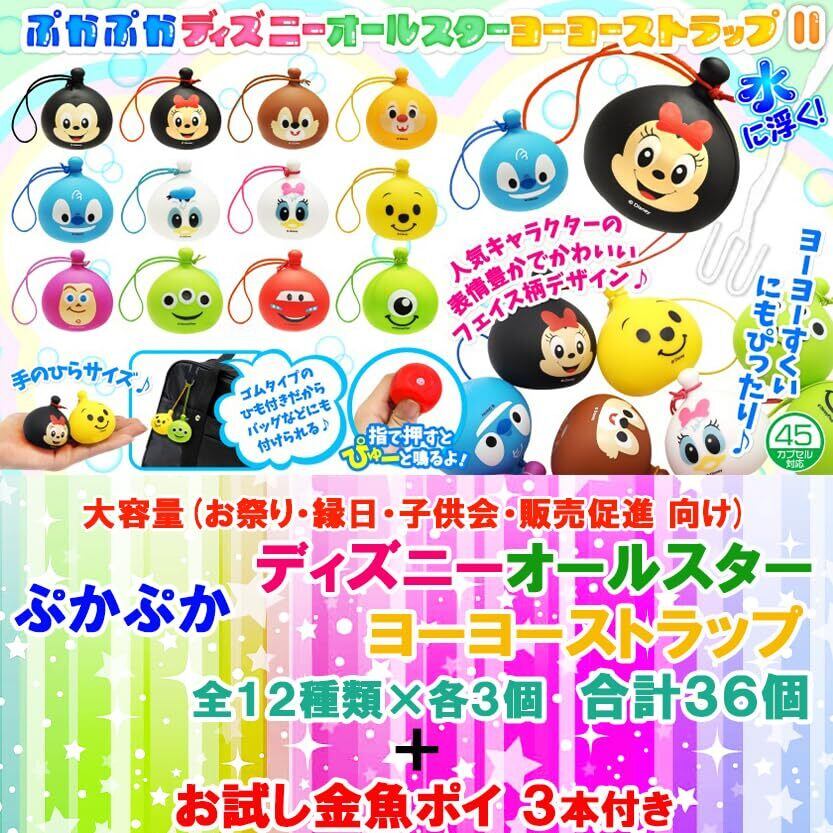 三洋堂 おもちゃ ぷかぷか ディズニーオールスターヨーヨー風ストラップ 全12種類×各3個 合計36個+お試し金魚ポイ3本 セット ( お祭り 縁日 子供会 販売促進 向け 大容量 ) を1セットにしてお届けします。(本物の水ヨーヨー・水風船ではございません)