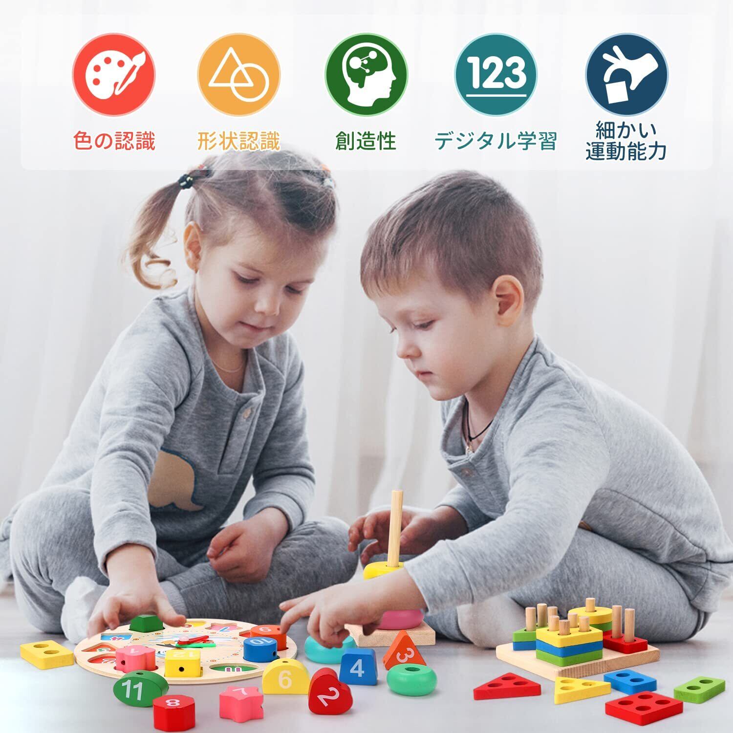 【モンテッソーリ木製】6個の赤ちゃんのおもちゃで,学習玩具,指先訓練 ,数学力アップ,色の認識 形の認知,子供のスキルを総合的に伸ばします。