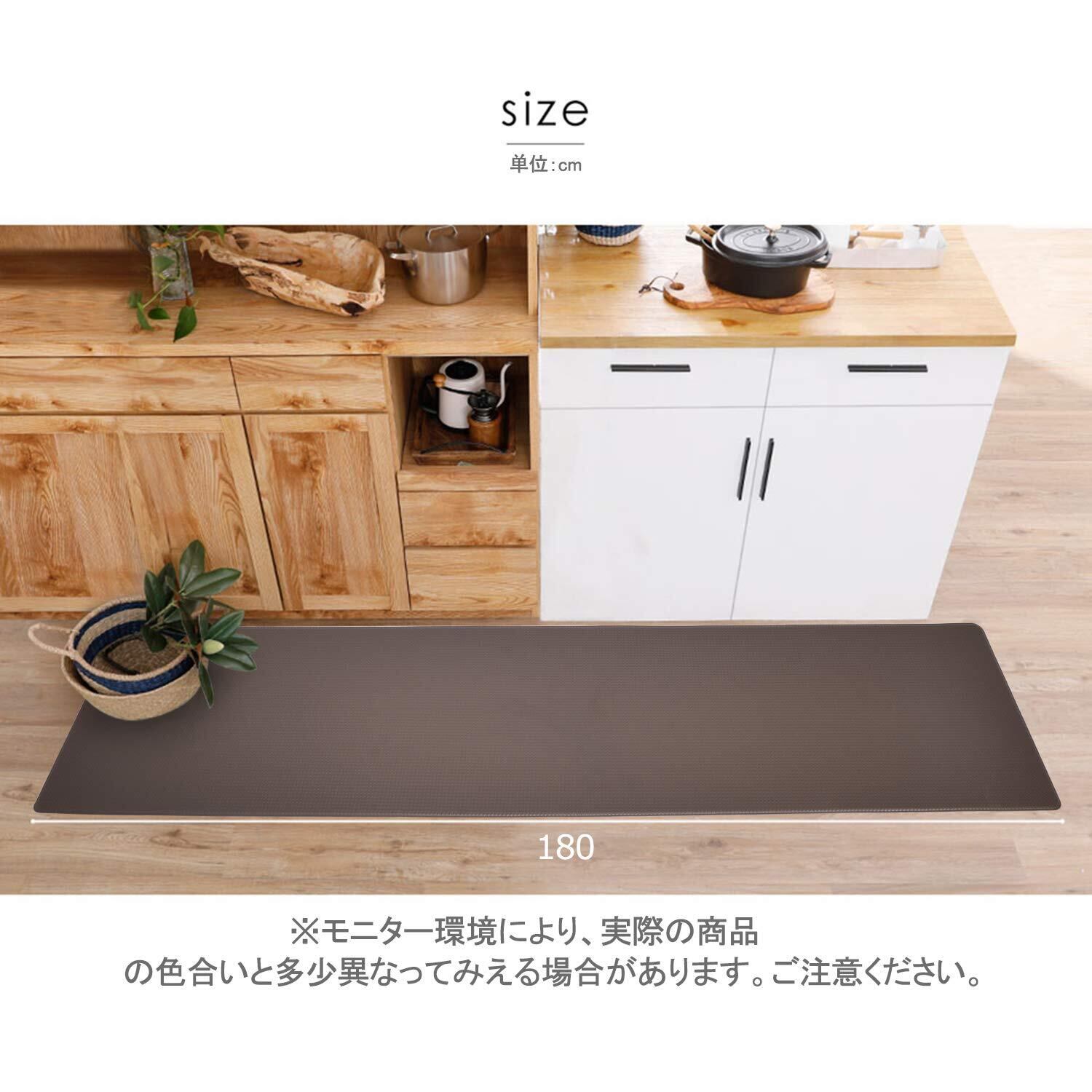 Baibu Home キッチンマット 拭ける 洗濯いらず 低反発 クッション 踏み心地いい ポリ塩化ビニール ずれない 台所 マット はっ水 防汚 180cm ブラウン