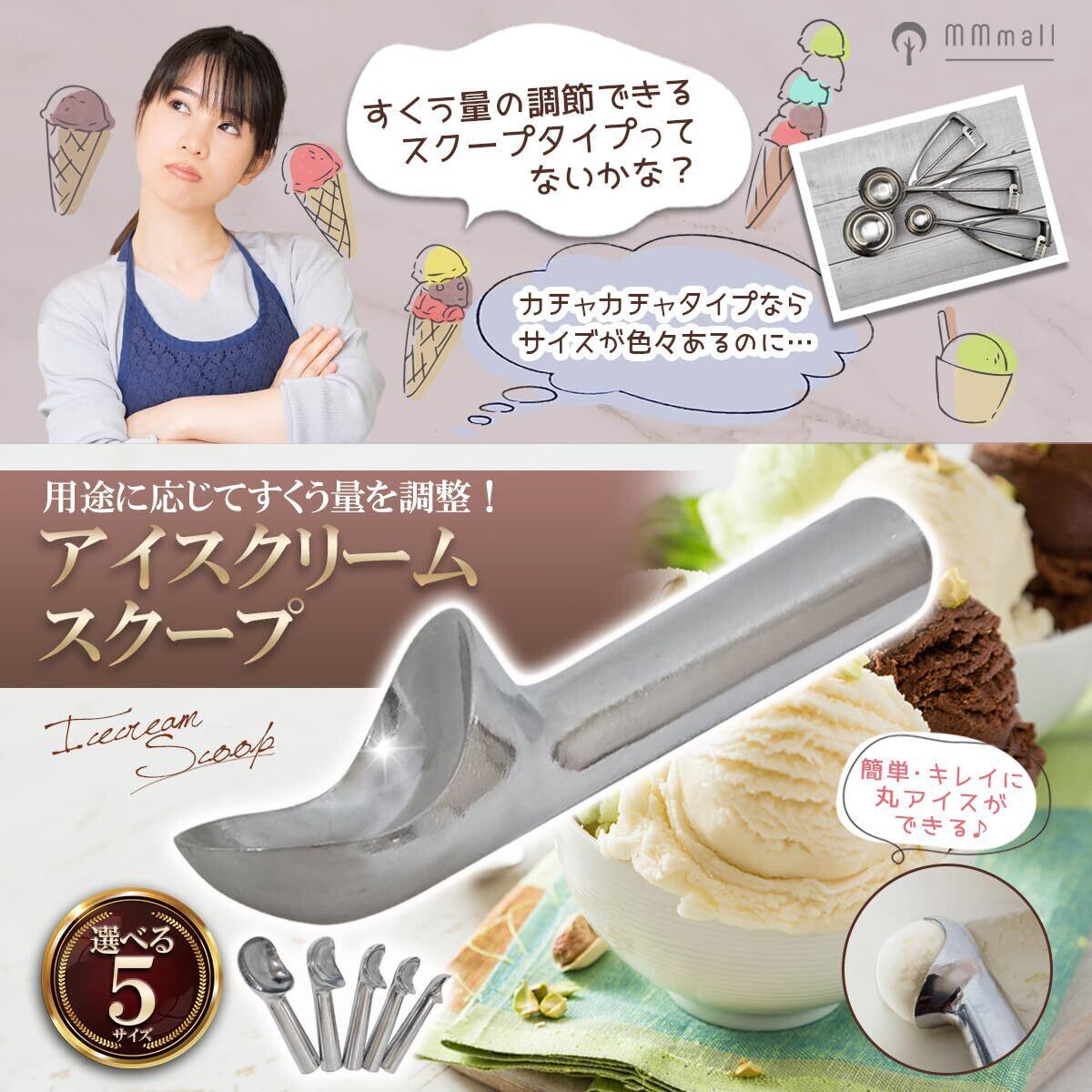 【スクープタイプでありながら豊富なバリエーション】貴方のお好みサイズに合わせてアイスクリームを削る事が可能です。小さめ大きめ自由自在‼