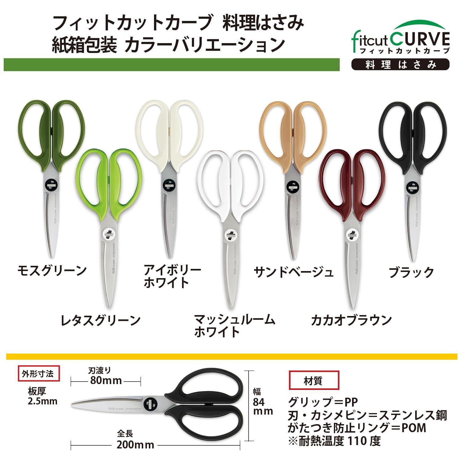 プラス キッチンバサミ 料理ばさみ 分解 食洗機対応 ストレスのない切れ味 フィットカットカーブ ブラック 切れ味継続 紙箱包装 35-719