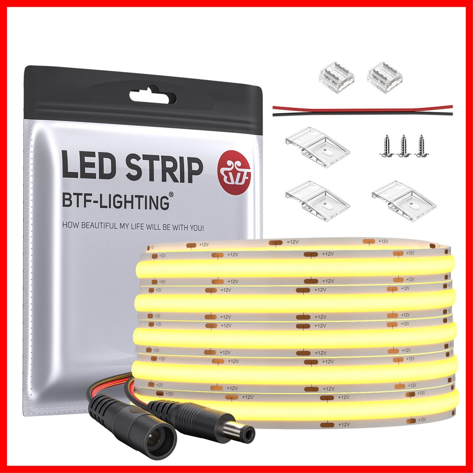 BTF-LIGHTING FCOB COB LEDテープライト 高密度 フレキシブル LEDテープライト 5M 480LEDs/m 2400LEDs/5m 昼光色 6000K 幅8mm ストリップライト DC12V 9W/m 調光可能 変形可能 切断可能 寝室 キッチンホーム 屋内装飾 エネルギークラス A+++ 非防水 FOBライト CRI>90 (アップグレード版)