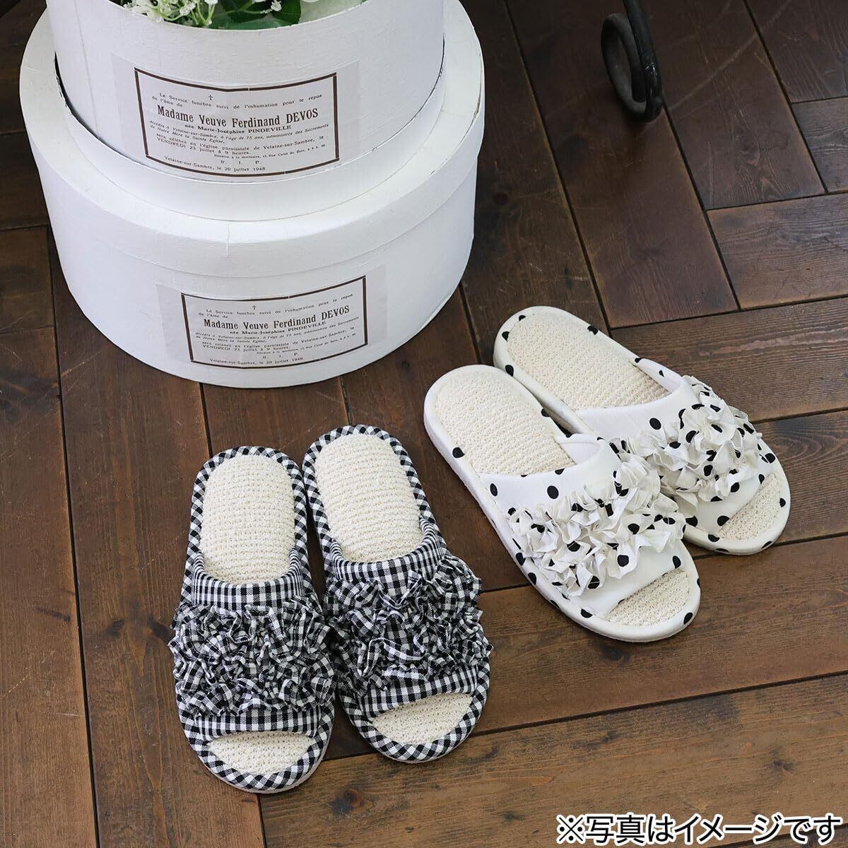 【特価商品】デコホーム スリッパ フリルチェック cSR19 ニトリ Mサイズ ブラック NITORI 5784372