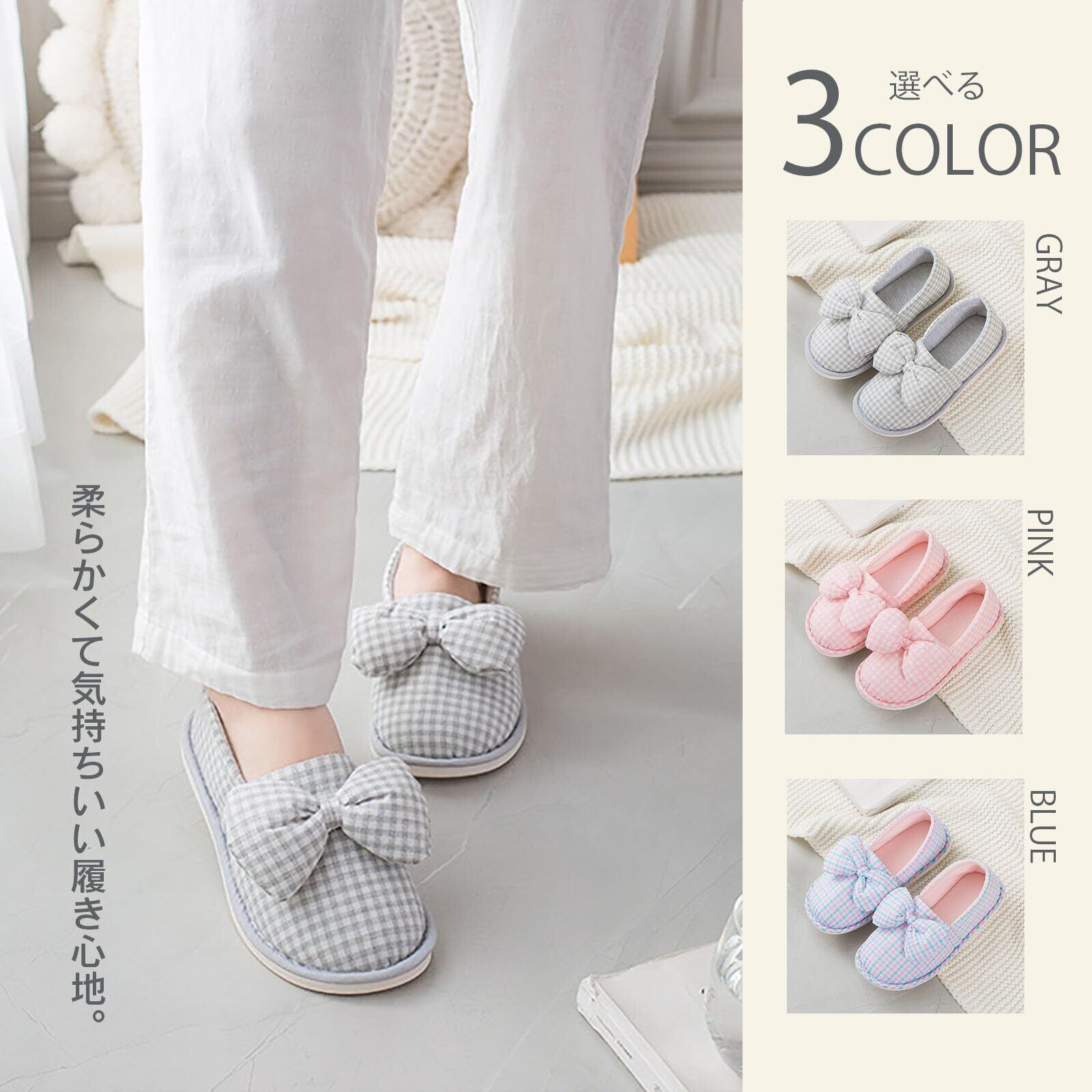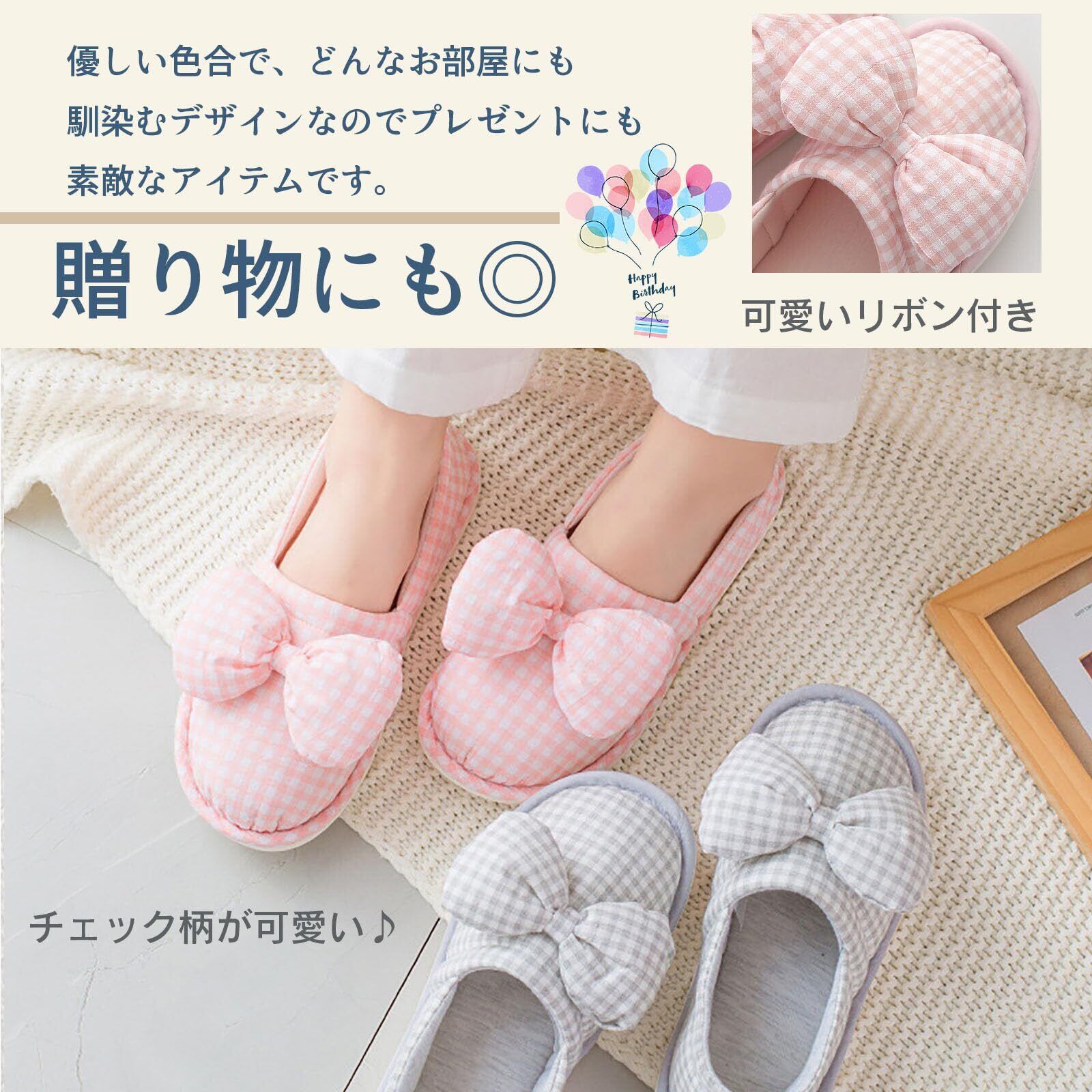[ソユル] リボン ルームシューズ 室内履き スリッパ チェック柄 かかと 付き あり 滑り止め 入院 院内 介護 リビング キッチン レディース
