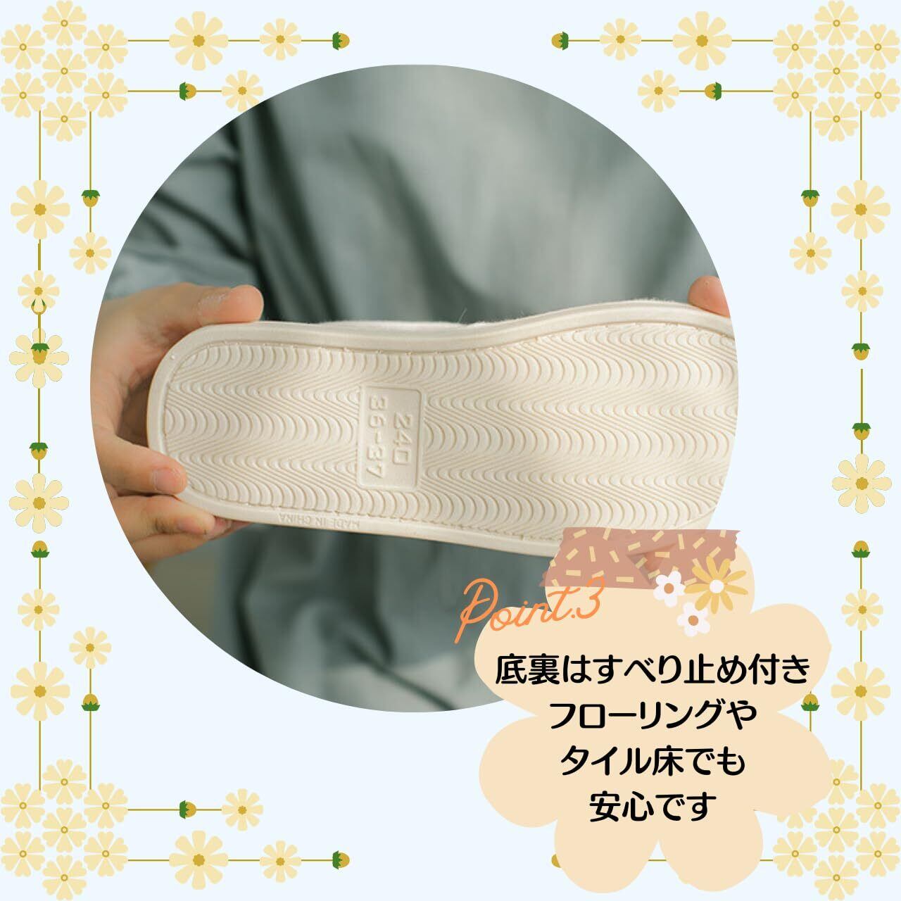 [ソユル] 花柄 フラワー ルーム シューズ 室内履き スリッパ 面テープ かかと あり すべり止め 付 介護 入院 リビング キッチン トイレ シンプル レディース