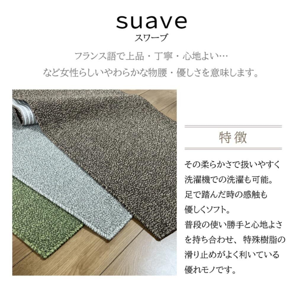 キッチンマット 【CoCo Color】 日本製 洗える おしゃれ SUAVE (50×180, ブラウン) 滑り止め 疲労軽減 お手入れ簡単 汚れにくい (グリーン, 50×180)