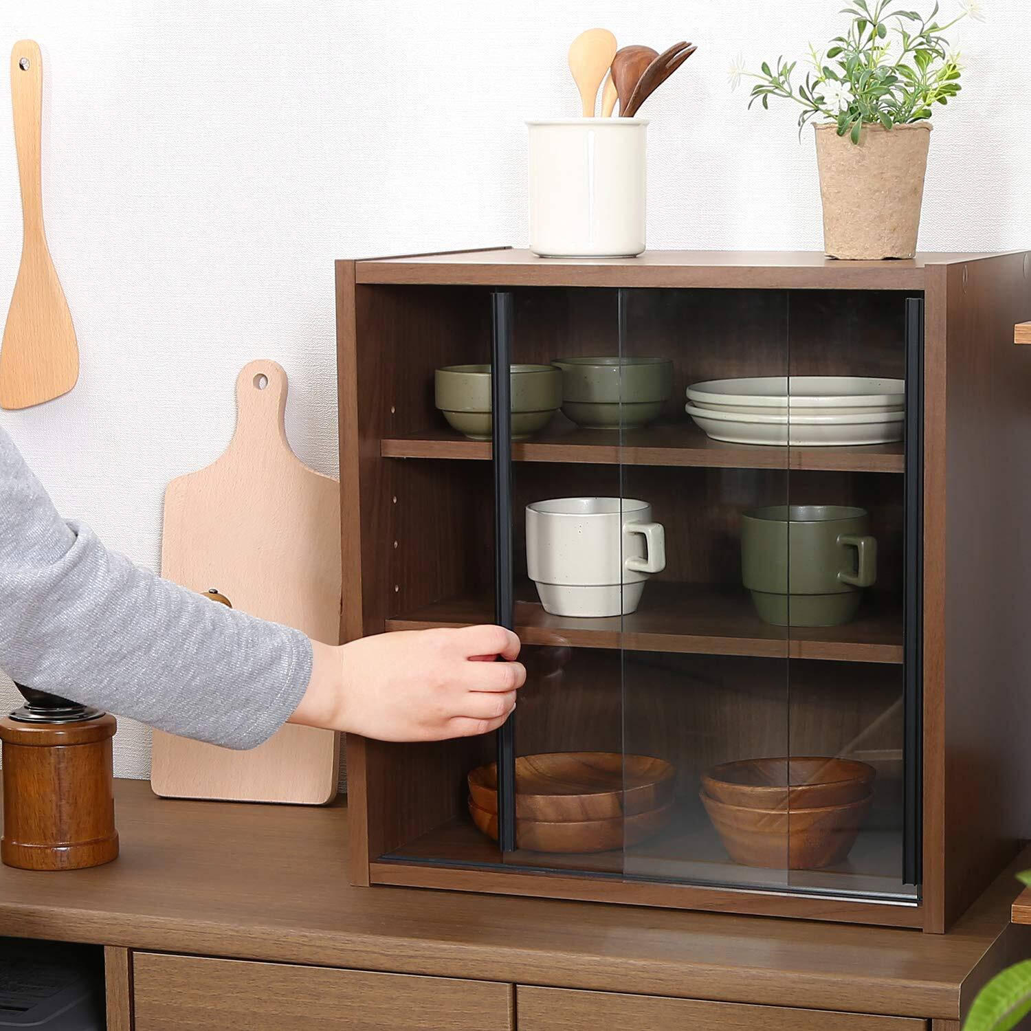不二貿易 食器棚 キッチン収納 幅43×奥行29×高さ44cm ミディアムブラウン ガラス扉 可動棚 組立品 99432 【Amazon.co.jp限定】