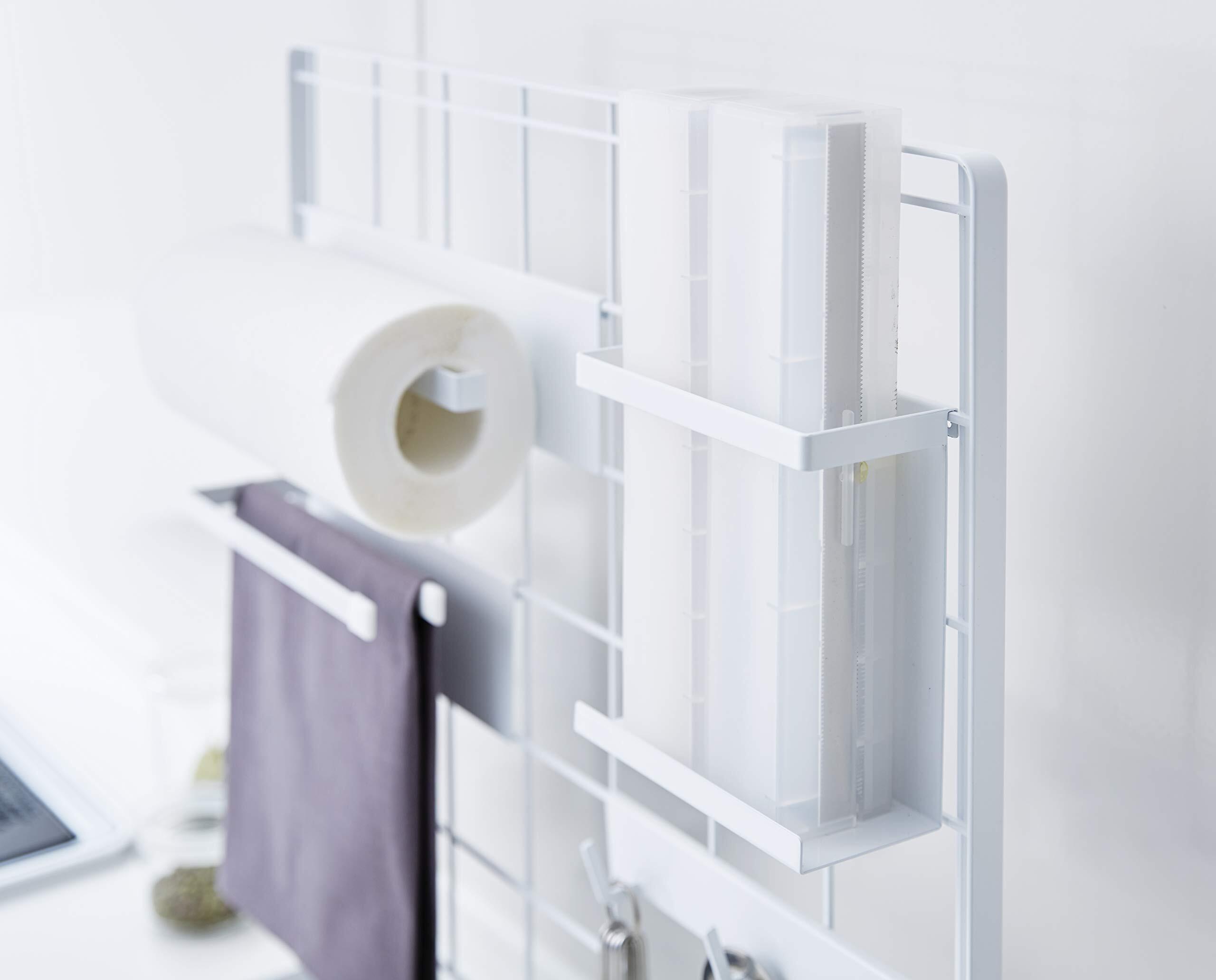 色:ホワイト_パターン名:コンロ横自立式メッシュパメル山崎実業 キッチンラック コンロ横ラック キッチン 自立式メッシュパネル タワー ホワイト 4177