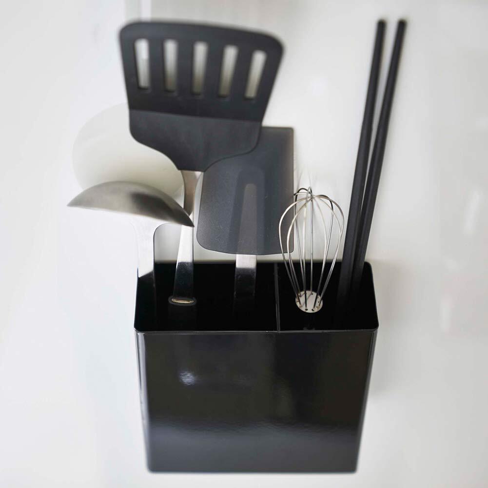 山崎実業(Yamazaki) マグネット キッチンツールスタンド ブラック 約W13.5XD5XH14cm タワー 浮かせる収納 簡単取り付け 5147