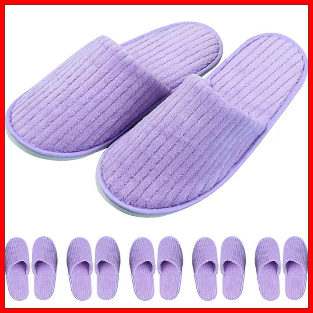 サイズ:FreeSize_色:パープル[Darslyn] 使い捨てスリッパ ルームシューズ 5足セット 室内用 来客用 ストライプスリッパ 滑り止め 柔らかい通気 民宿 オフィス 工場 避難 旅行 美容院 病院 旅館 ホテル業務用など多シーン適用 個別梱包 ホーム用品