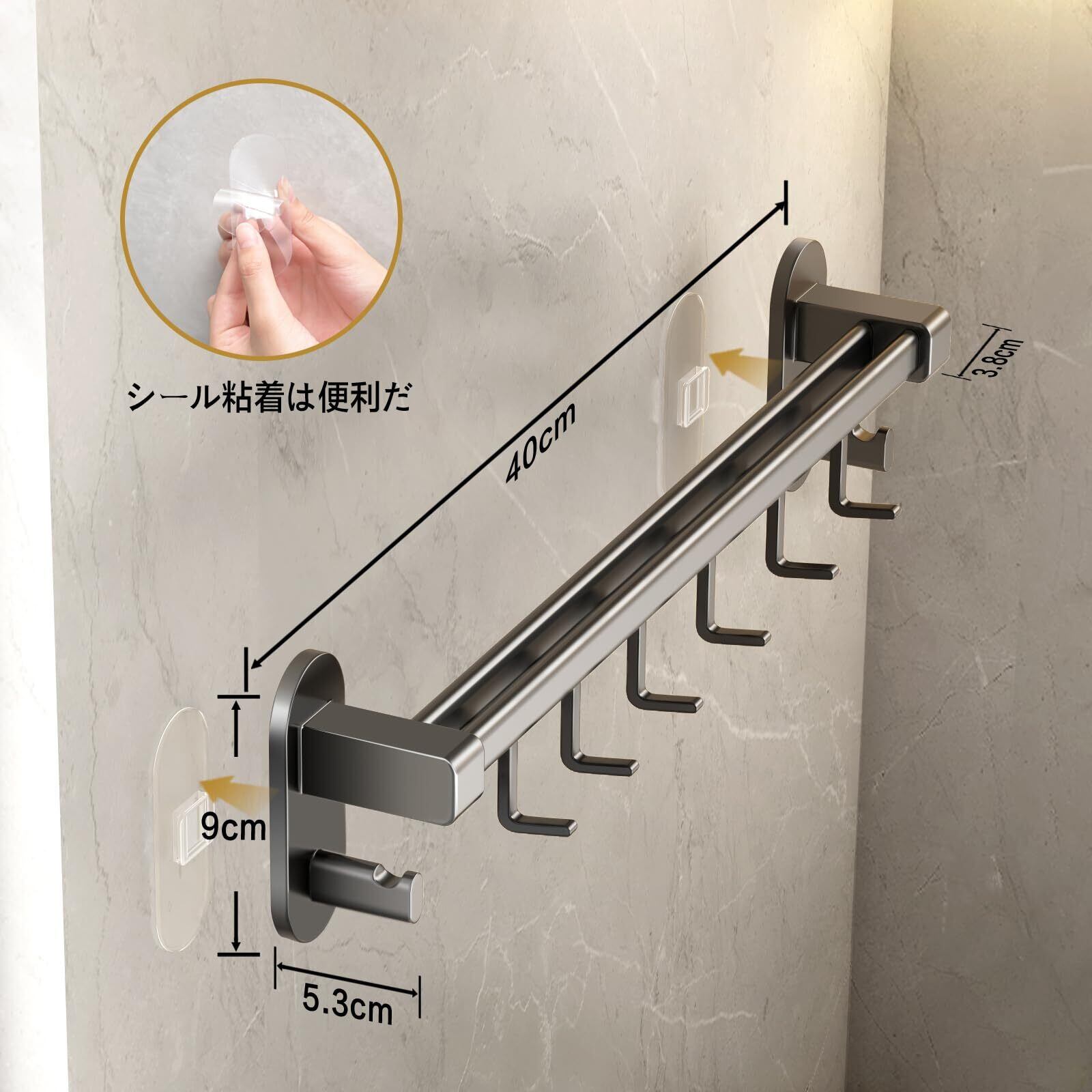 【可動式フック 】可動式フックなので、フックを自由に調整することができます。タオル、お玉などを綺麗に収納することができます。