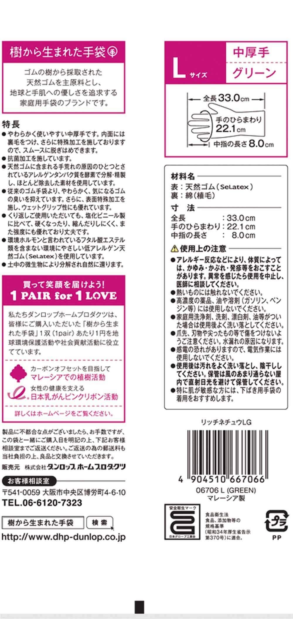 ダンロップ ホームプロダクツ 炊事手袋 天然ゴム 中厚手 リッチネ グリーン L キッチン 食器洗い 掃除 洗濯 園芸 グローブ
