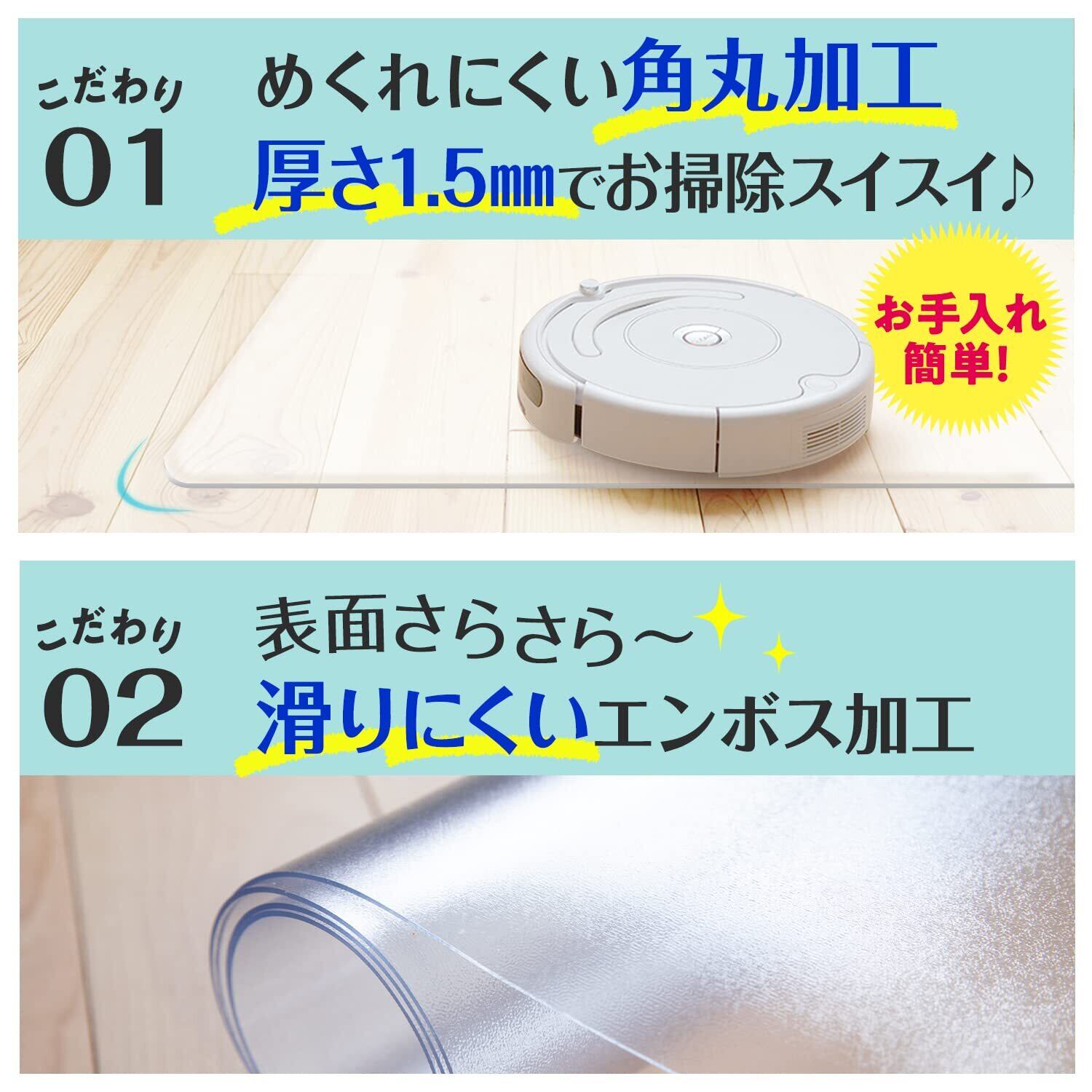 ✅【傷つきにくいPVC素材】 布では落ちない液体の汚れも、サッと一拭きすることで落とすことができます。また、厚さが1.5mmと段差を気にせずお使いいただけます。透明なので、景観を阻害せずにインテリアにもしっかり馴染みます。