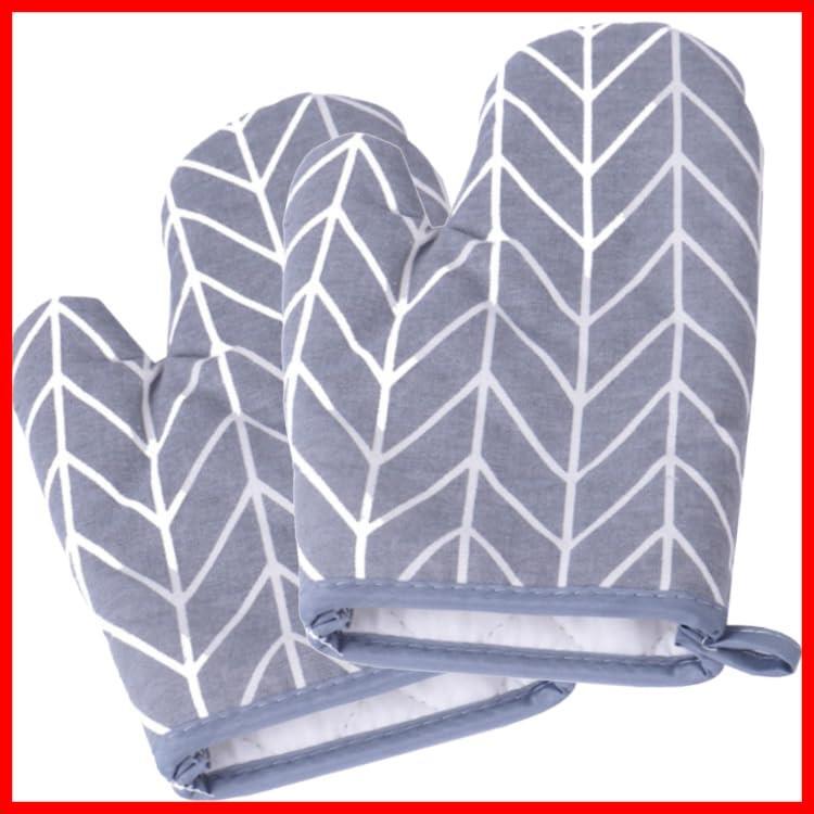 Cadi 耐熱 キッチンミトン 2個セット キッチン ミトン 鍋つかみ オーブンミトン 鍋掴み 耐熱ミトン 鍋 つかみ 北欧風 厚手 オーブン ミット なべつかみ モノトーン (グレーリーフ)