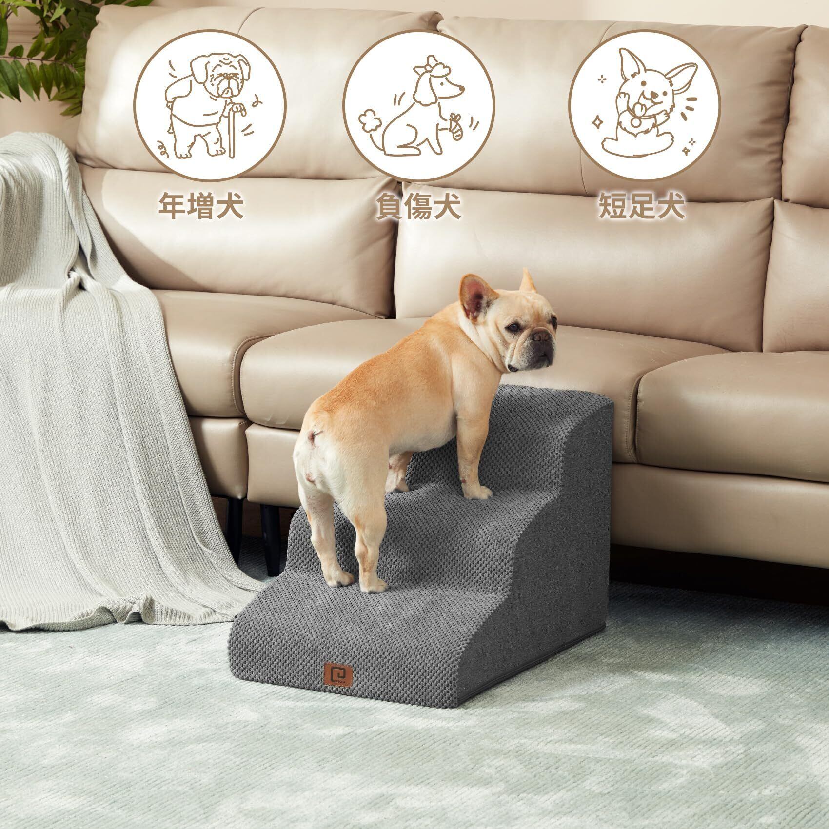 EHEYCIGA 犬 階段 ステップ ペット階段 ドッグステップ 高密度 滑り止め付き 安定性 カバー取り外し可能 洗える 小型犬適用 (3段,グレー)
