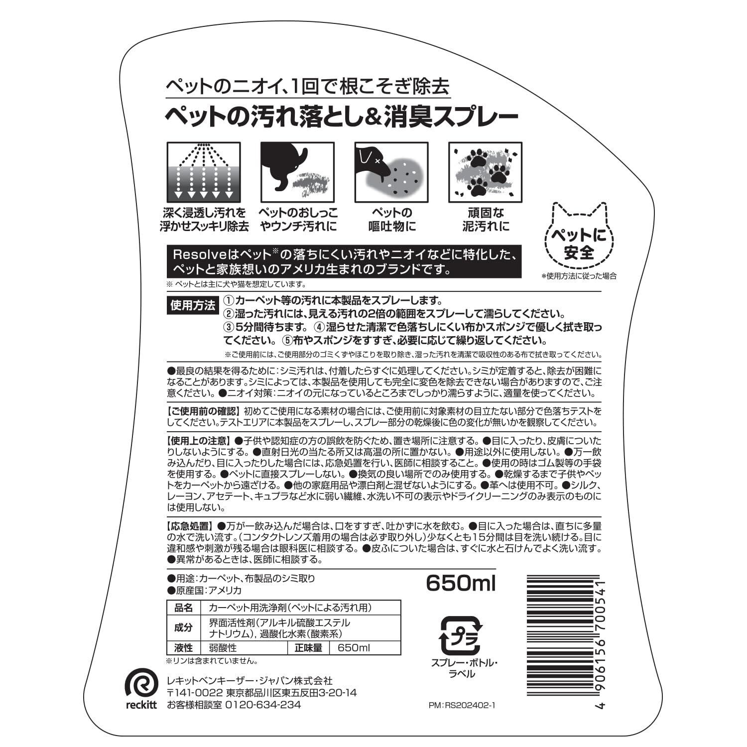 リゾルブ ペットエキスパート ペットの汚れ落としアンド消臭スプレー