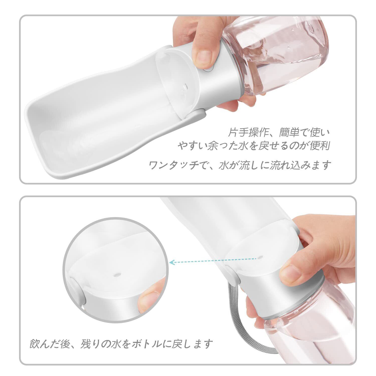 使いやすさ:このペットウォーターボトルは片手で操作できます。ペット用ウォーターボトルのボタンを押して、180度下に傾けるだけです。簡単に水を追加したり、リリースして停止したり,ペットウォーターボトルの水が使えます。ボタンを押してボトルを180度上に傾けると、残りの水をリサイクルできます。