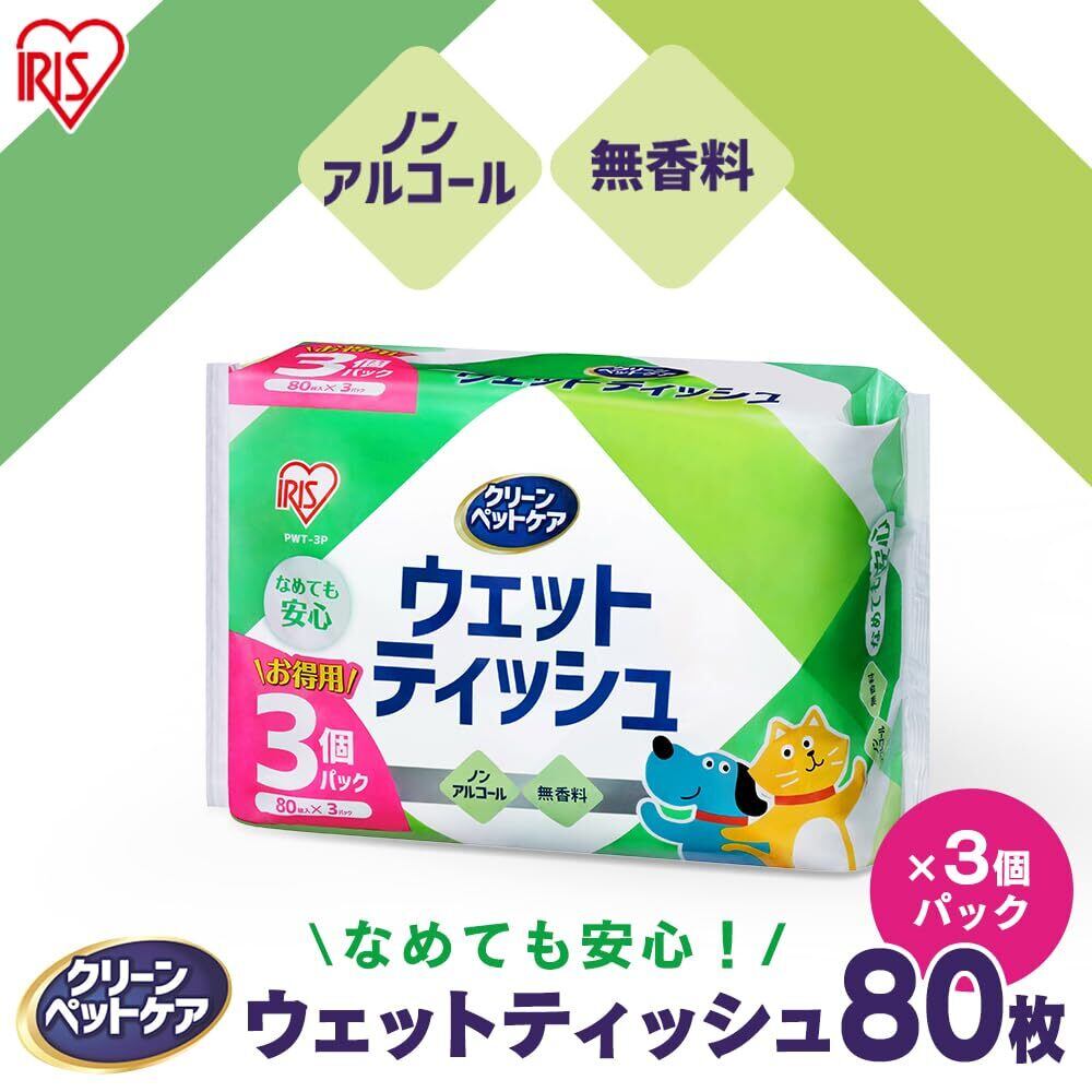 アイリスオーヤマ ペット用 ウェットティッシュ ノンアルコール 日本製 80枚入×3袋