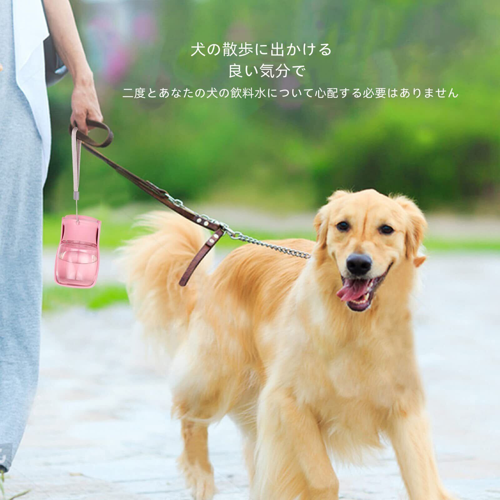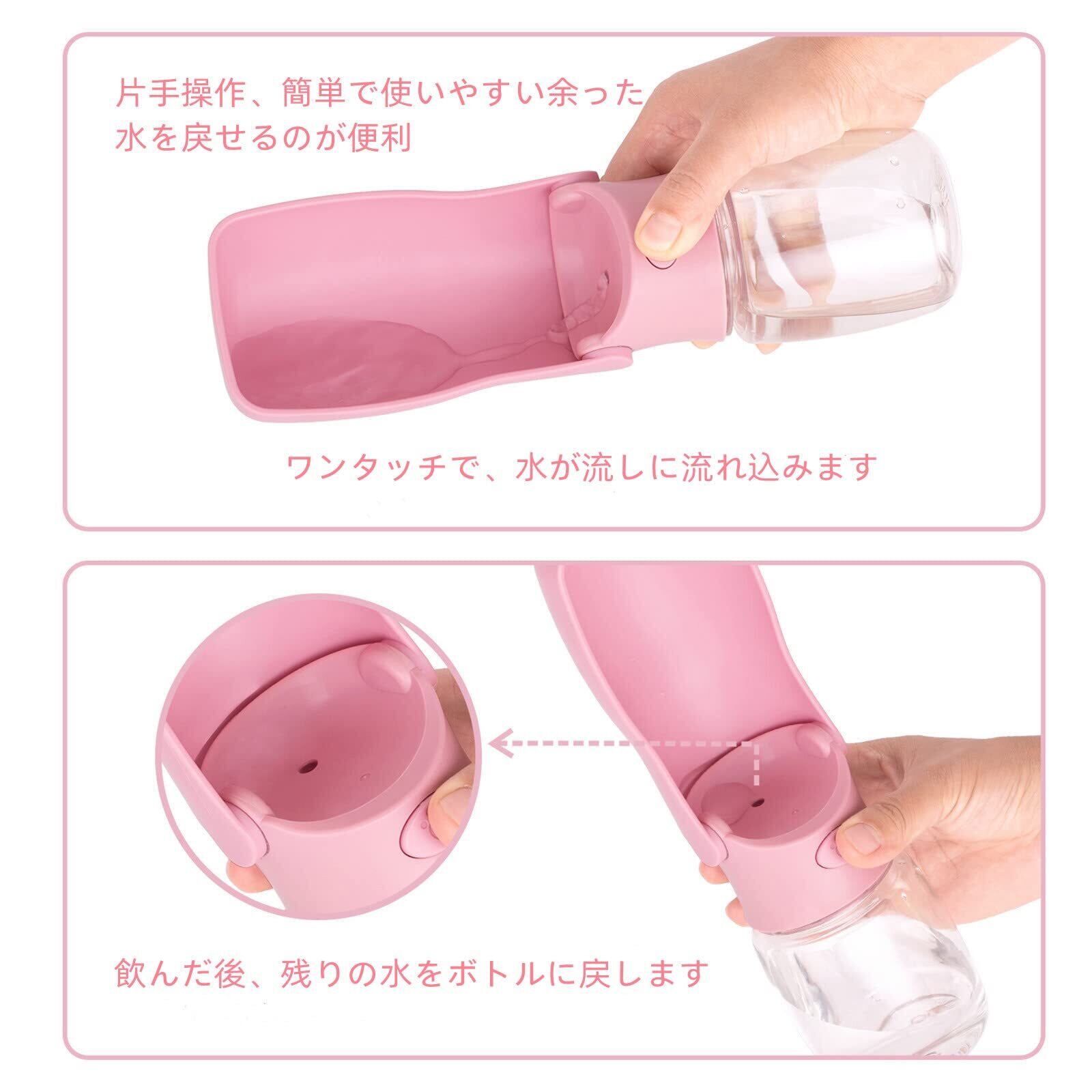 【在庫処分】ペットウォーターボトル 犬 水飲み器: ペット 散歩 携帯用折りたたみペット水飲み - 犬用散歩用給水 水槽付き 水漏れ防止 手軽に水分補給が出来 - 外出ペット用品水飲みボトル ペットの水筒(350ml ピンク)