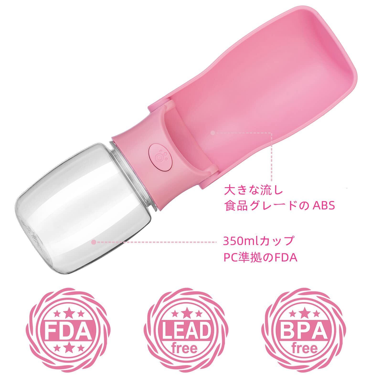 製品仕様と素材:ペット用ウォーターボトル「容量」350ml「重量」0.15kg「カラー」ピンク。 食品グレードのABS、カップ本体:透明なPC、環境にやさしい、高品質、独特の臭いなし