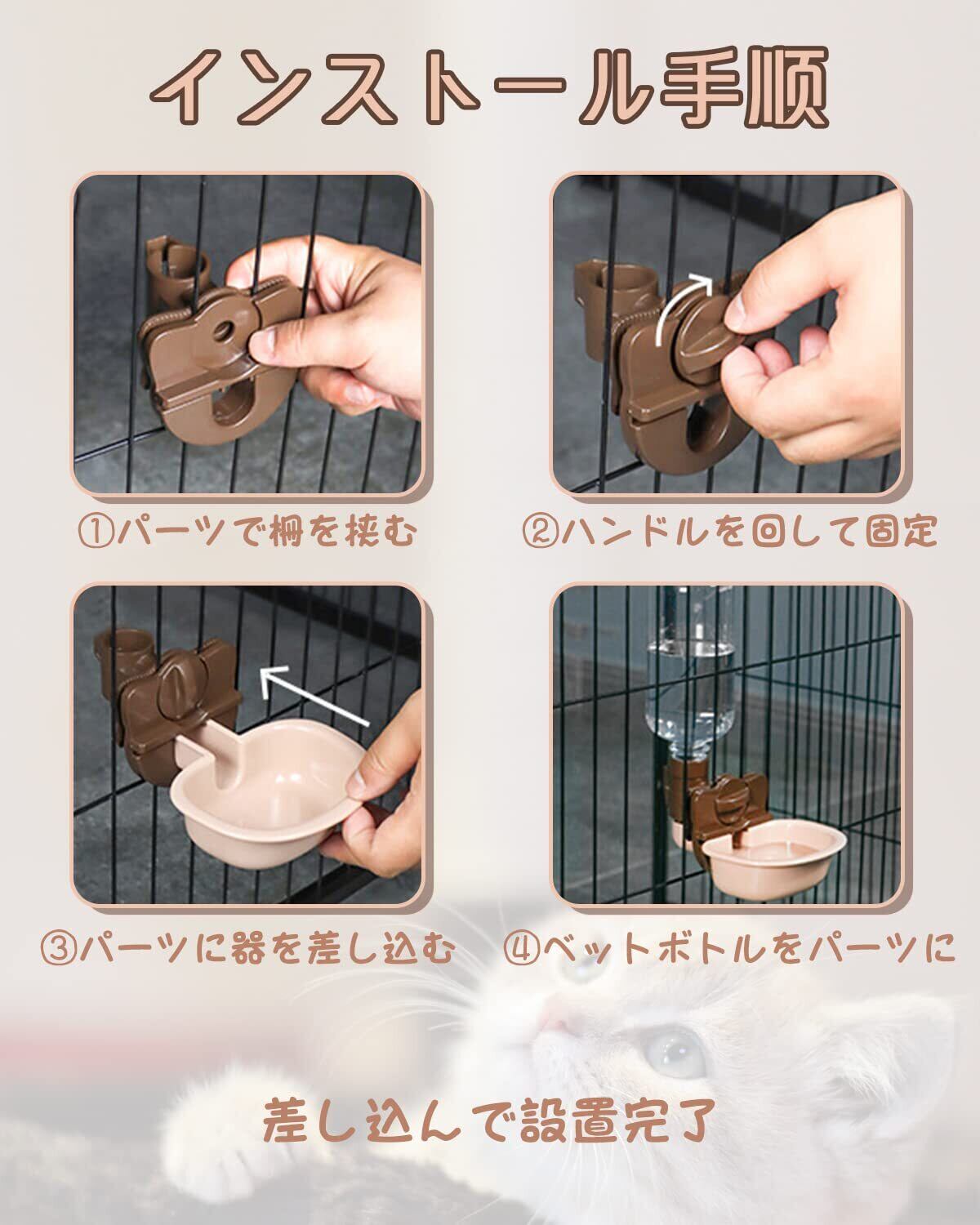 Beraypoo 犬 猫 水飲み器 給水器 ペットボトル 使用可能 ケージ 取付型 電源不要 お留守番対応 熱中症を防ぐ 転倒防止 漏れ防止 ペット用品 (ココア)
