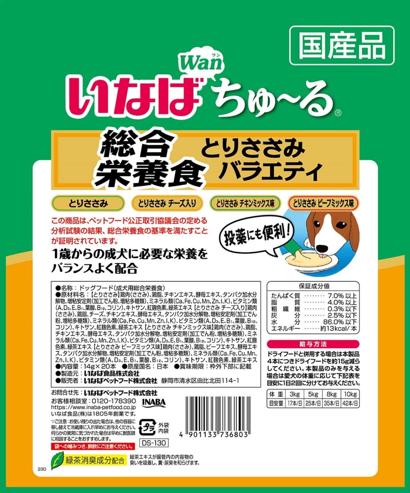 いなば 犬用おやつ ちゅーる 総合栄養食とりささみ バラエティ 14グラム (x 20)