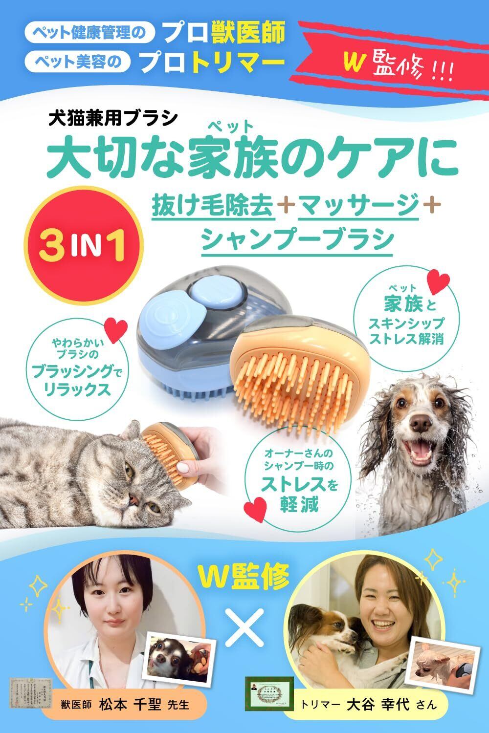 猫 ブラシ 犬 ブラシ 【獣医師/トリマー/W監修】 ペット用品 ペットブラシ シャンプーブラシ 毛取り ペット シャンプー gracibo (ブルー)