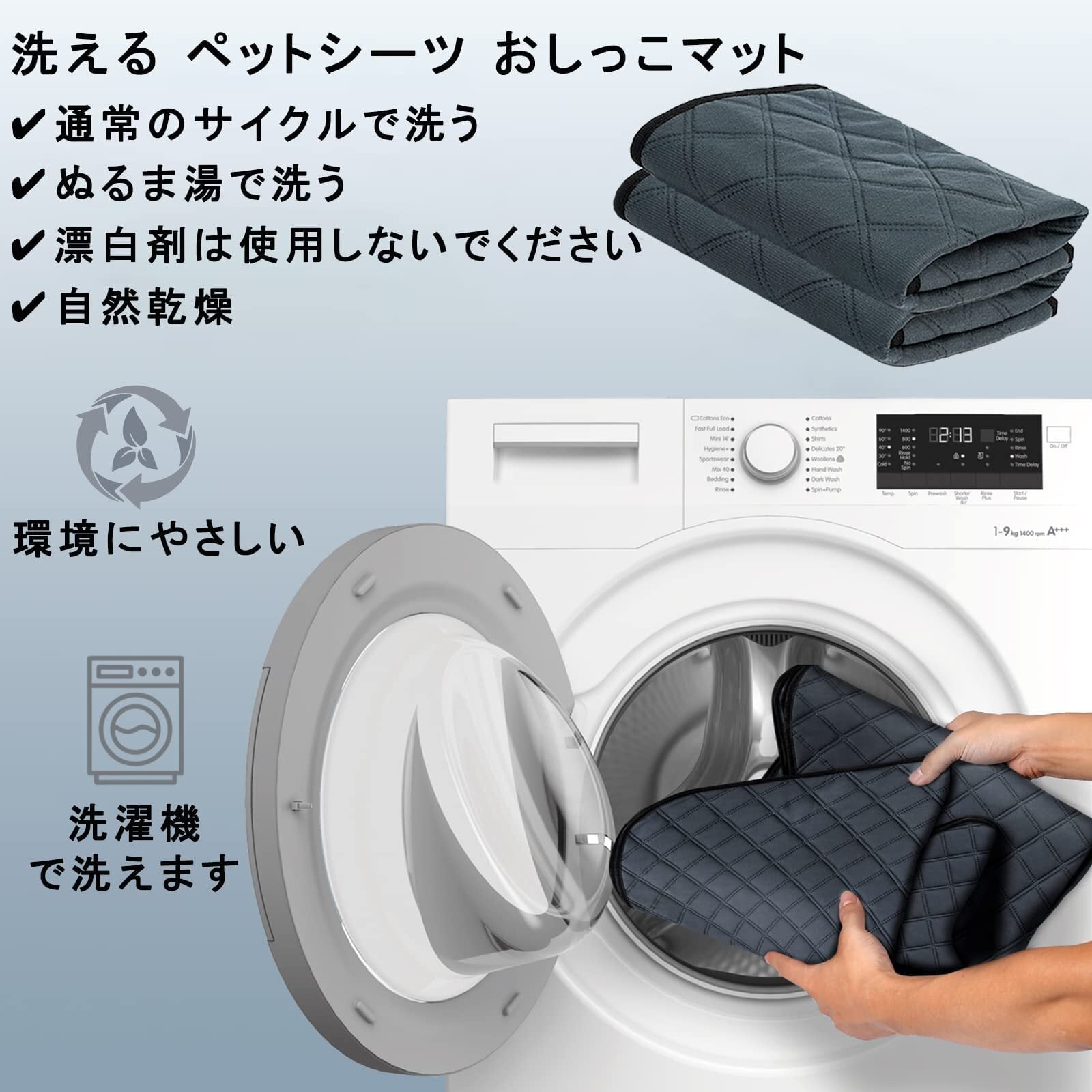 【丸ごと洗える&繰り返し使える】ペット用おしっこマットは柔らかく耐用性がよく、お手入れも簡単で、洗濯機に入れて洗えます。何度でも洗って使える経済性。一回使い捨てのおしっこシートよりもっと経済的で環境にやさしく。