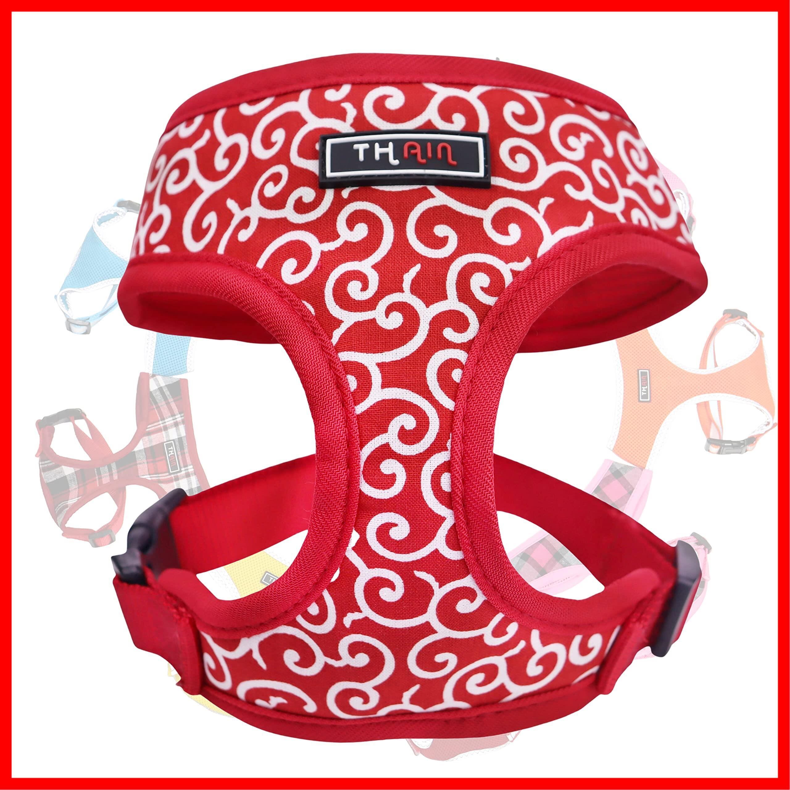 THAIN ハーネス 中型犬 ハーネス 唐草模様 可愛い 犬用ハーネス ベストハーネス 犬 抜けない フォーシーズンズ ペット用品 ドッグハーネス 安全 通気 おしゃれ 中型犬用ハーネス 着脱簡単 胴輪 (L, 唐草模様レッド)