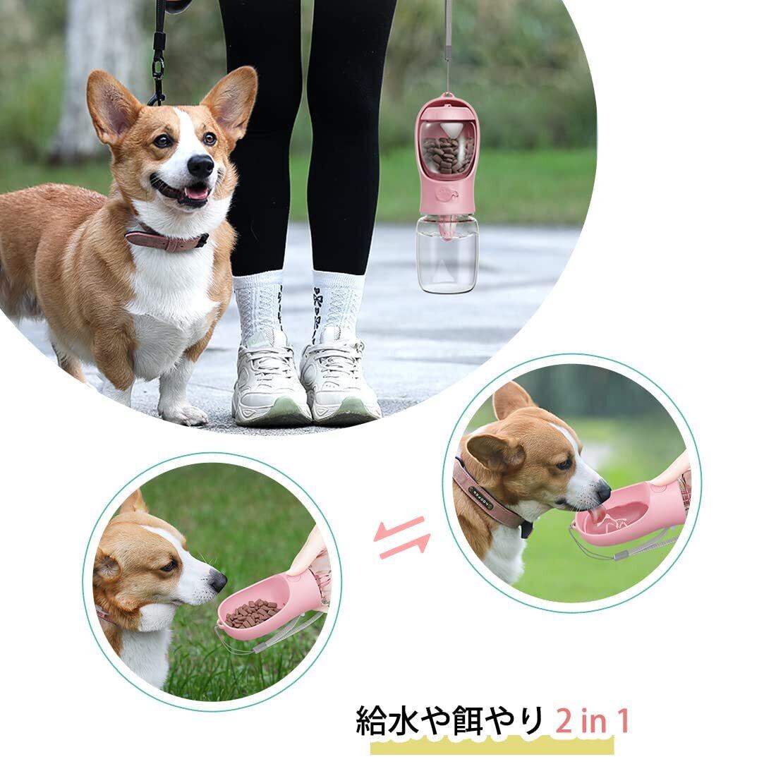 【給水や給餌2 in 1デザイン】このボトルは水を入れるだけでなく、ドッグフードを持ち運ぶこともでき、いつでもどこでも食べたり飲んだりできます。外出時にペットが外で空腹や渇きを心配する必要がなく、他の給水器より便利です。水と餌は1台に分けて保管することができます。1台2役ですがコンパクトです、それに、ボトルにストラップが付いており、持ち運びに便利です、犬と一緒に散歩、旅行するのに最適です。
