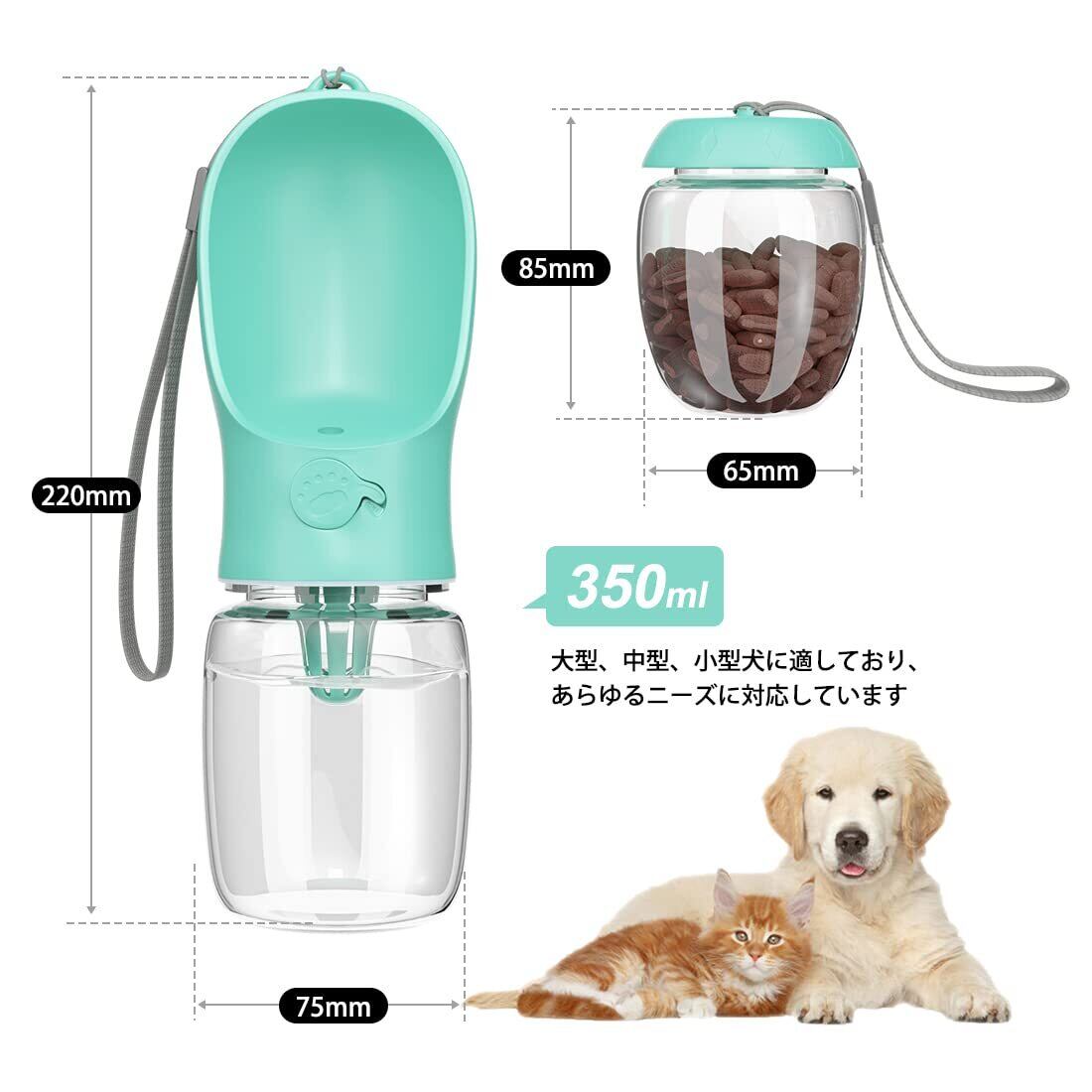 C-J-W 犬 水飲み器 ペット 水飲み 犬 散歩 おやつ 給水器 水槽付き 犬用品 犬用水入れ ウォーターボトル 350ml 大容量 水漏れ防止 高温耐性 携帯用飲み器 犬猫など 多種ペット適用 ブルー