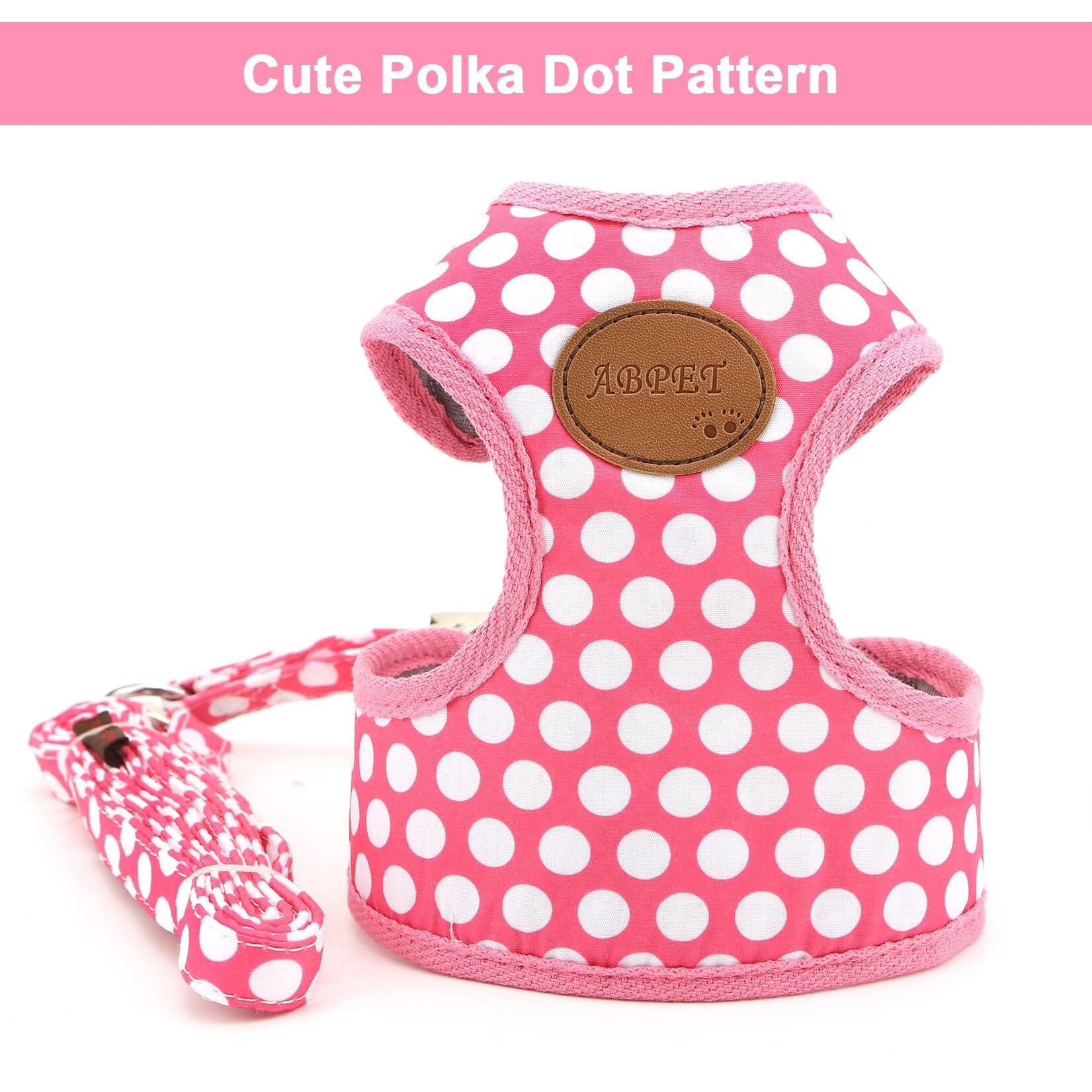 サイズ:S_色:ピンクかわいい おしゃれ ペット用品 ドッグウェア 調節可能 引っ張り防止 チワワ用 ハーネス ハーネス 胴輪 メッシュ お散歩 通気性 ベストハーネス 水玉柄 ピンク 可愛い 小型犬用 セット S リード 犬用 ZUNEA