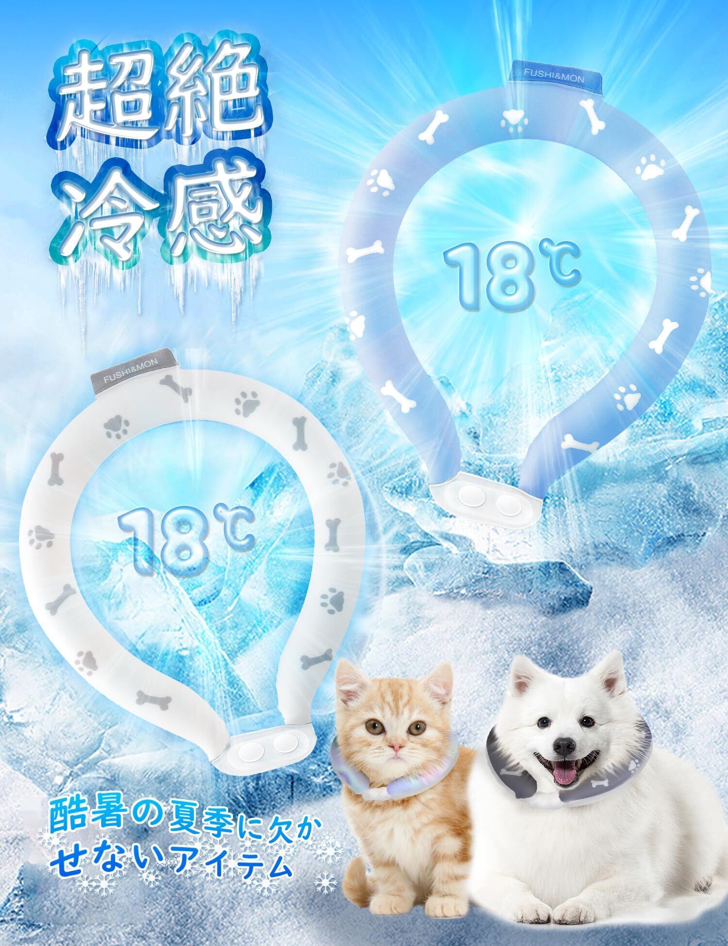 【18度以下の環境で自然に凍結】 首元を冷やして熱中症対策に!冷蔵庫・冷凍庫または18度以下の冷水・氷水に晒すことで再度凍結し、ひんやりが復活します。 結露せずさらさら、保冷剤·氷などと違って結露しないため水が垂れてペットの毛が濡れることなく快適にお使いいただけます。