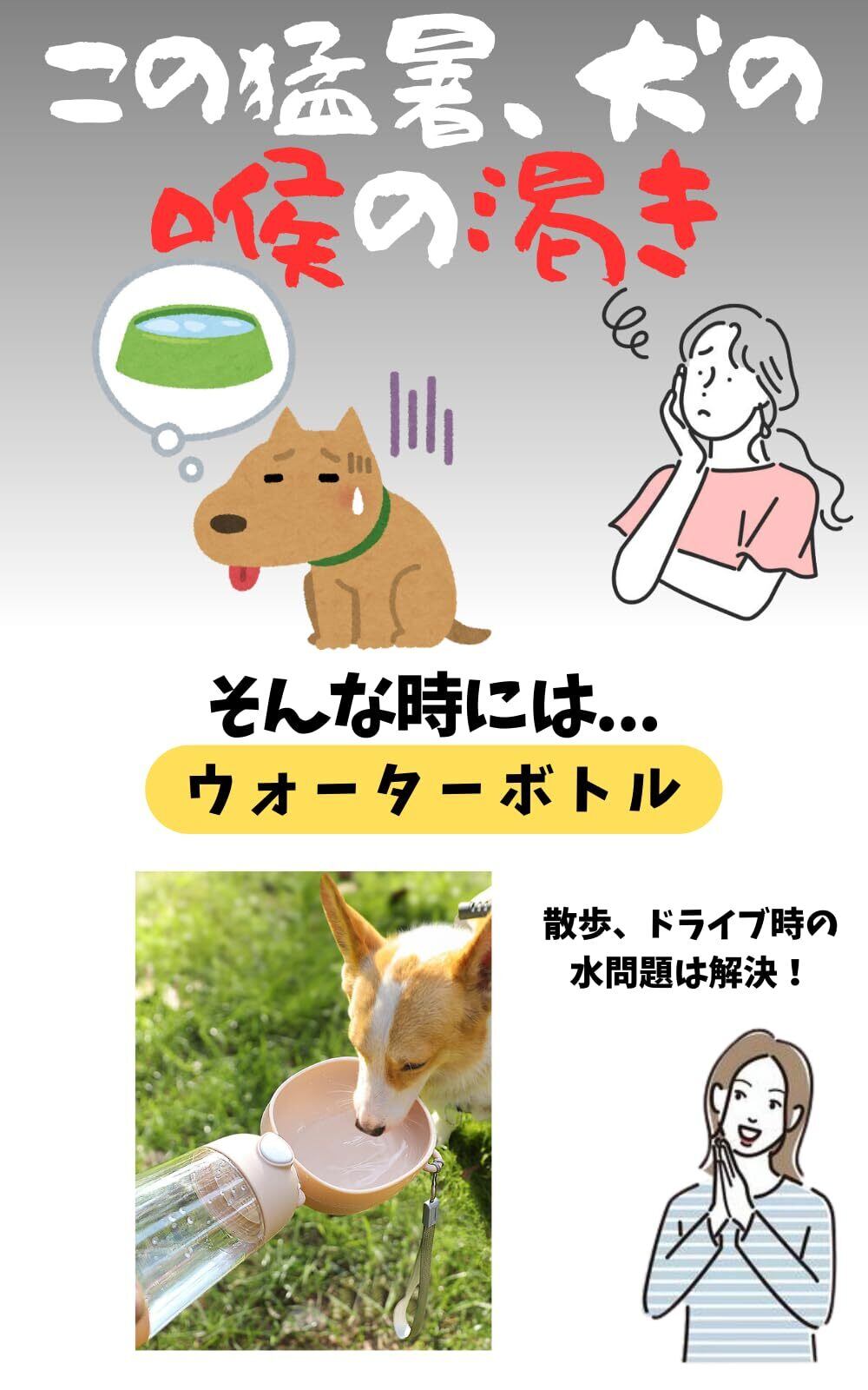 【手軽に水分補給】大切なペットの水分補給に便利なアイテムです。ボトルと受け皿が一体型になっており外出先でも簡単に給水が可能です。飼い主の手から直接給水できるため汚れも気になりません。ペットにとっても快適に水分補給ができます。 【片手でカンタン給水】ボタン一つで給水のON・OFFが行えるため、片手のみでカンタンに給水が可能です。愛犬の散歩中にリードを持ちながらでも給水できるので、夏場など頻繁に水分補給が必要な場面でもストレスになりません。