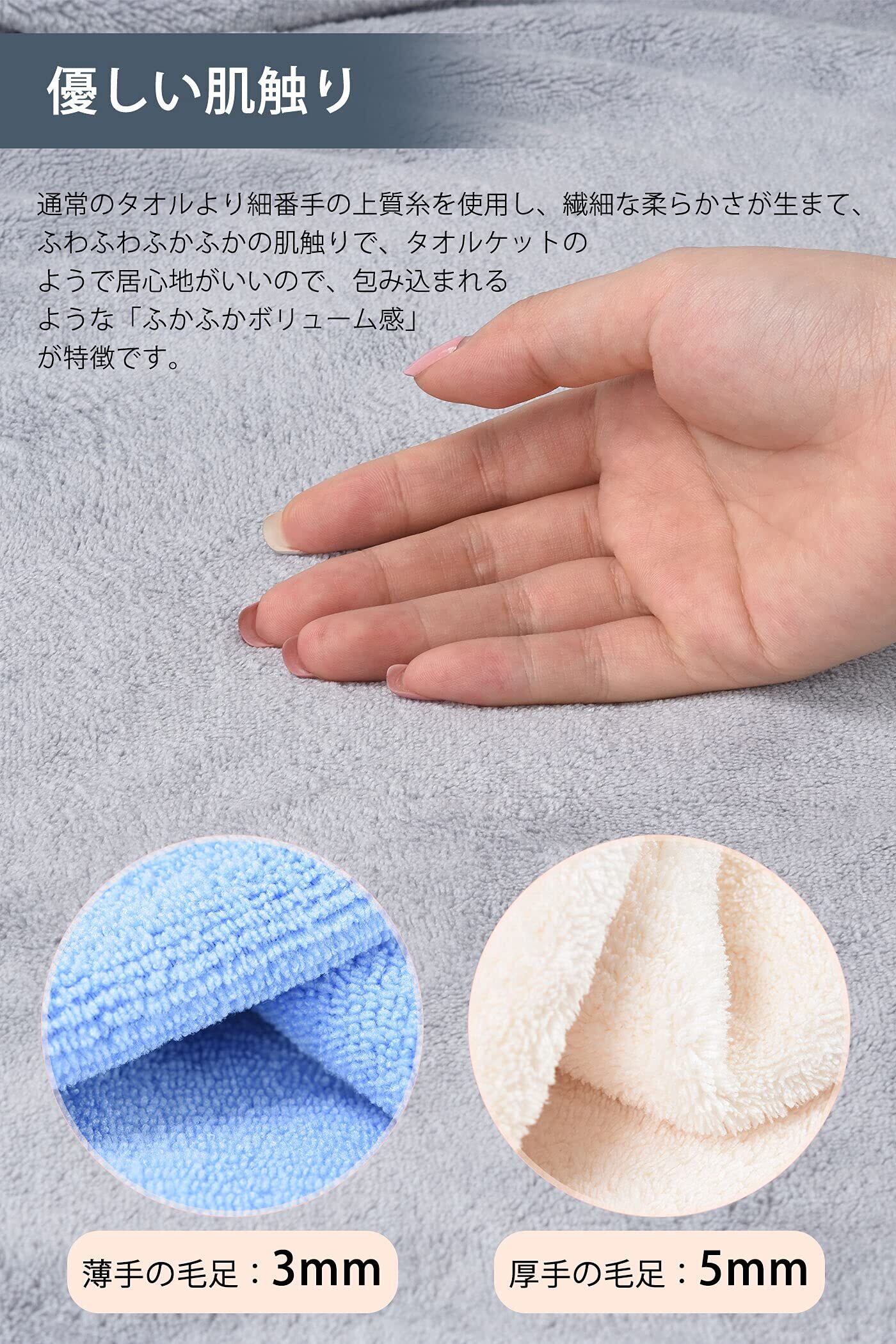 【ふわふわふかふかを実感!優しい肌触り】ほかの一つの面しか吸水不可のタオルとは違って、こちらのタオルは両面同じ長さの毛足で、両面共いっぱい水分を吸い込むことができます。しかも、柔らかな肌触りで心地よく、特に厚手の方は通常のタオルより細番手の上質糸を使用し、繊細な柔らかさが生まて、ふわふわふかふかの肌触りで、タオルケットのようで居心地がいいので、包み込まれるような「ふかふかボリューム感」が特徴です。圧縮してから発送しますから、お手元に届いたら洗濯することによってパイルが立ち上がり、洗濯後のほうがふかふかやわらかに回復することができます。干す際には、是非”ぱたぱた”と振ってパイルを立ち上がらせてあげてください。「ボリュームリッチ」本来のふかふか感をお楽しみいただけます。
