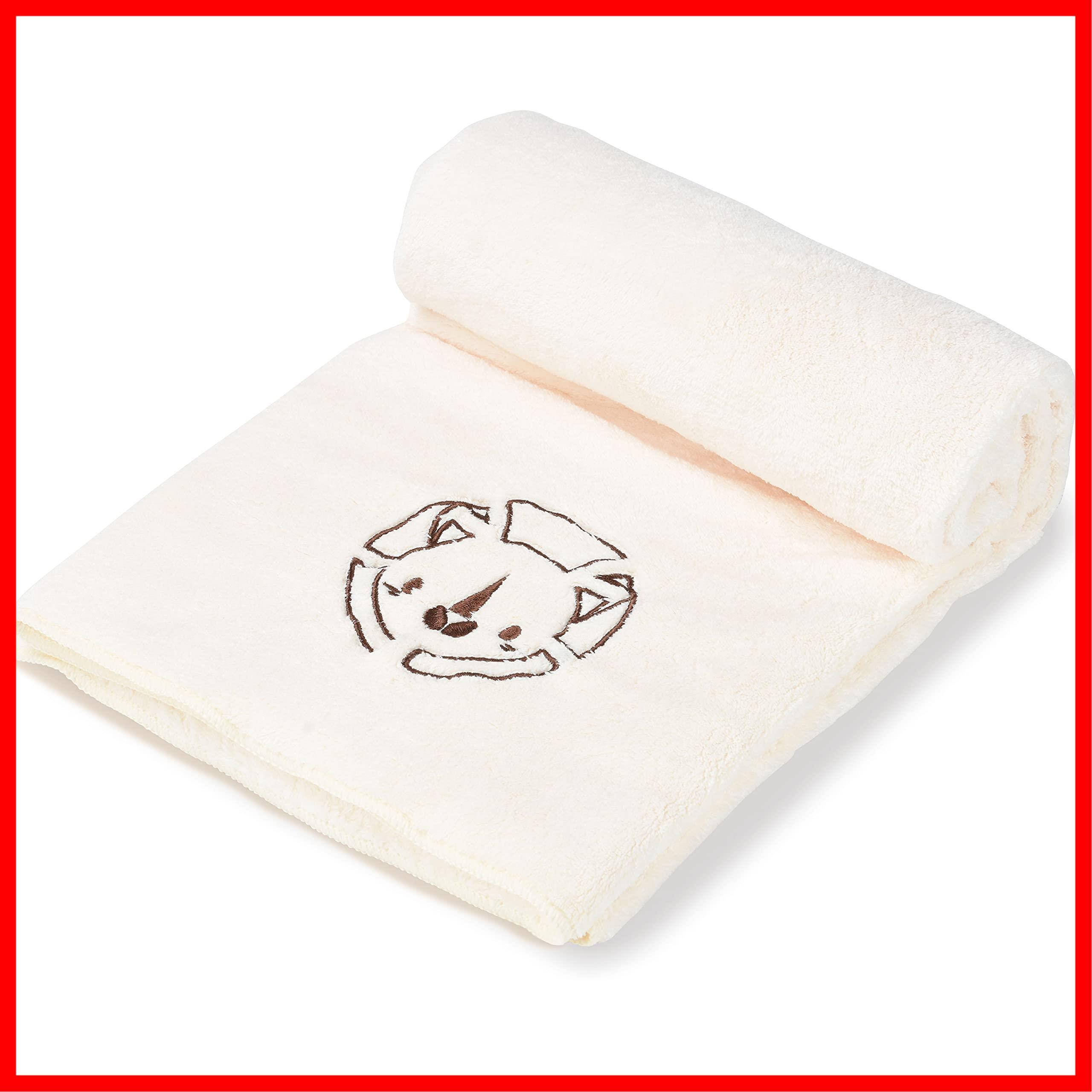 LINECY ペット用 タオル 超吸水 厚手 75cmx130cm大型犬 ふわふわ マイクロファイバー 速乾 抗菌 高級 バス お風呂 大判 ライトベージュ 1枚
