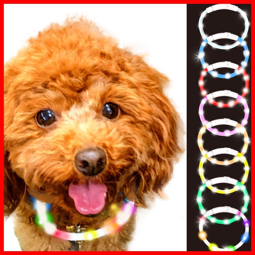 【Lino Ulu】LED首輪x400m先から目視可能【USB充電式x軽量x15分で充電可能x防水x噛んでも大丈夫x電池機器内蔵】光る首輪 犬 首輪 光る 子犬 中型犬【M, レインボー】