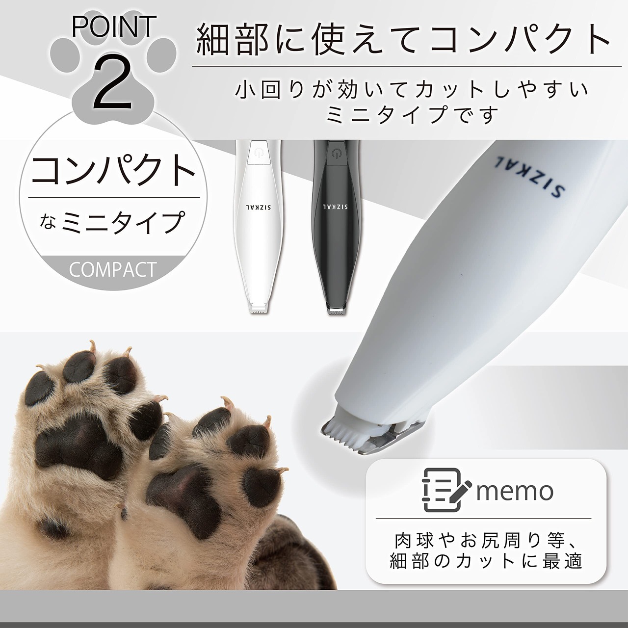 色:White日本企画 小型 業務用 プロ トリミング 肉球 足裏 長時間バッテリー コードレス 静音 ペット 猫 犬用 バリカン 【静かに刈る"しずかるミニ"】
